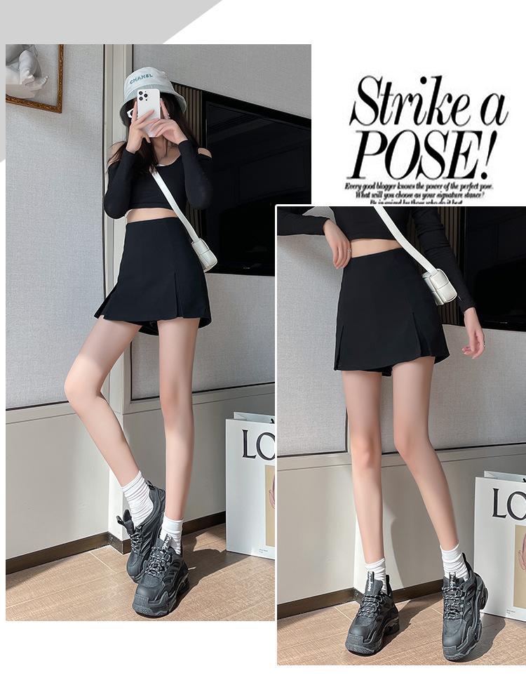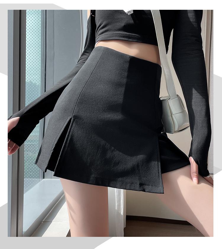 Falda de cintura alta para mujer, nueva falda corta sexy de verano 2022, falda negra adelgazante con abertura en forma de A.
