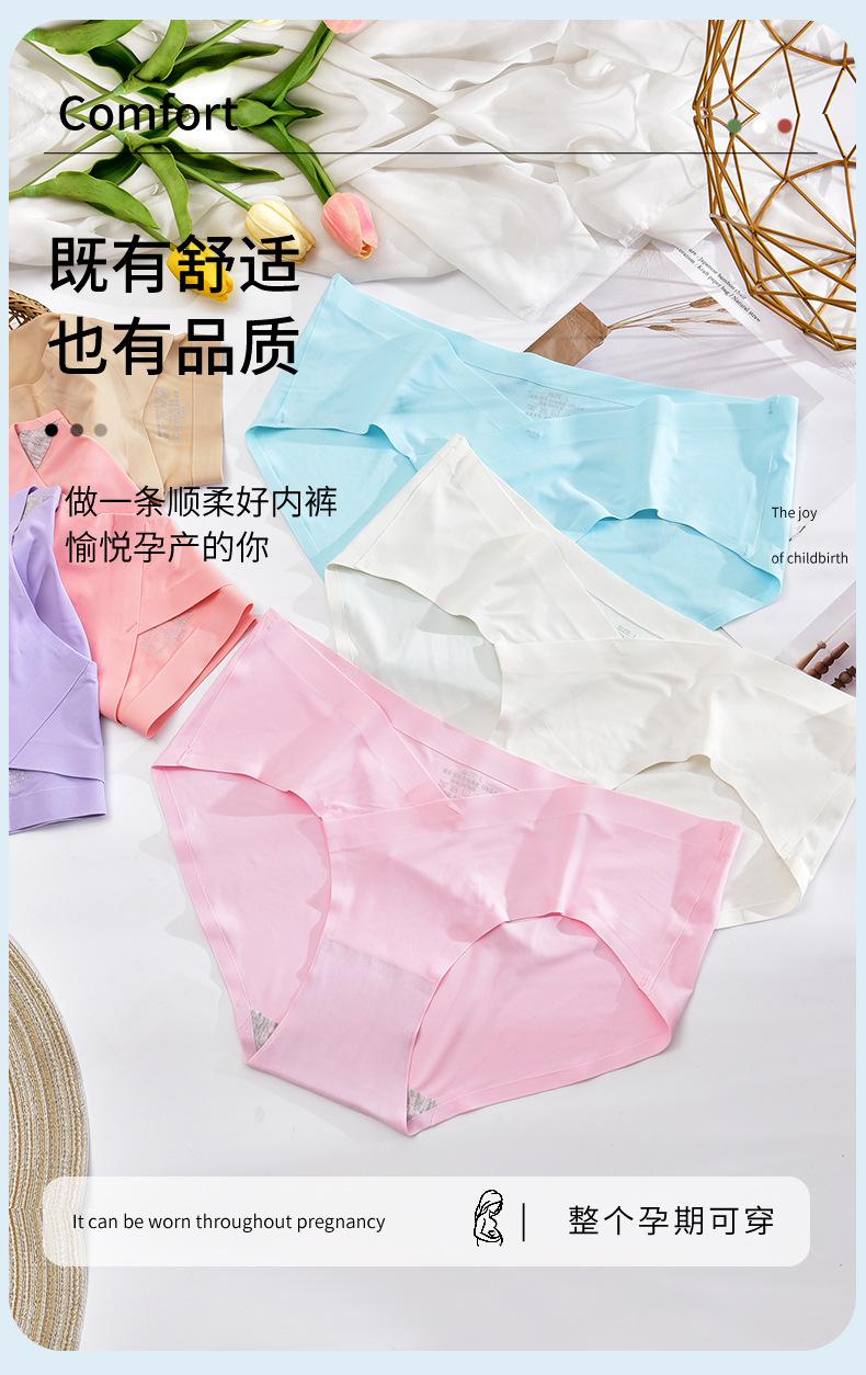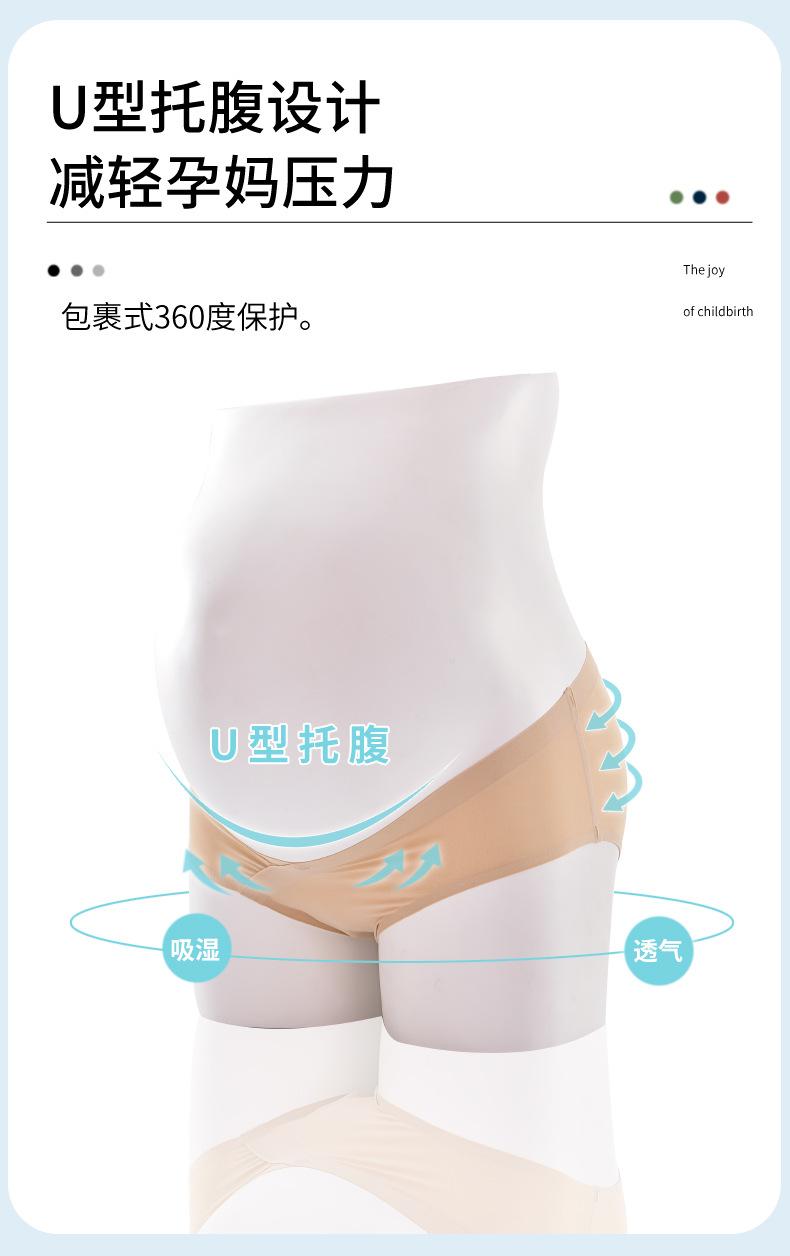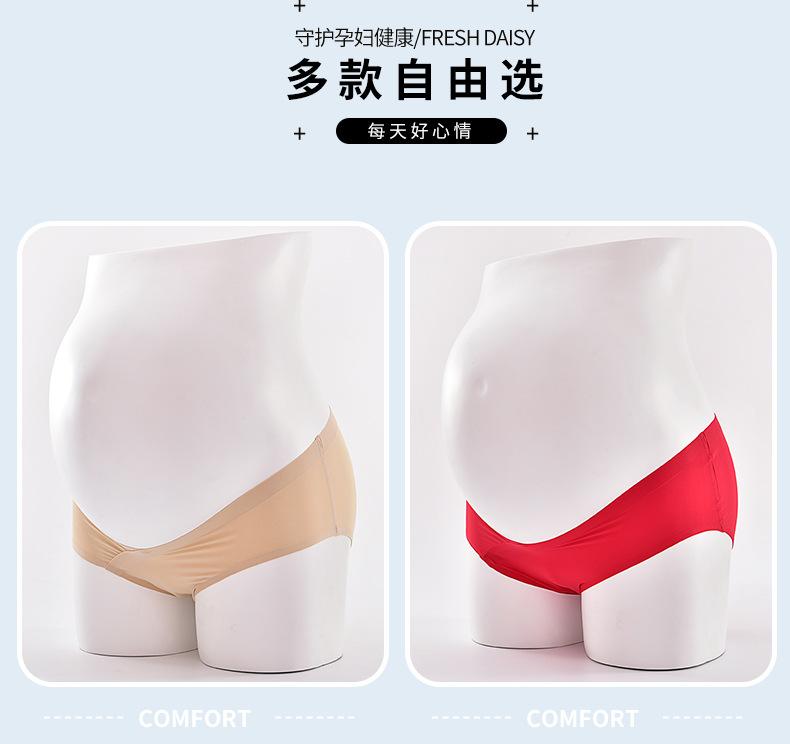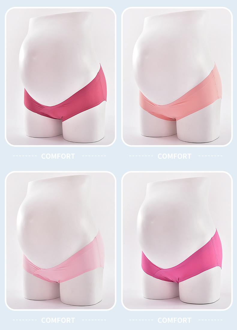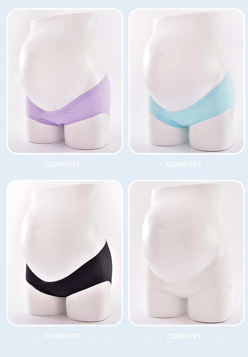 Ropa Interior de Maternidad Sin Costuras de Seda de Hielo para Mujer de Cintura Baja Embarazo a Cuadros Transpirable Soporte para Vientre Una Pieza Sin Costuras Protector de Vientre en Forma de U