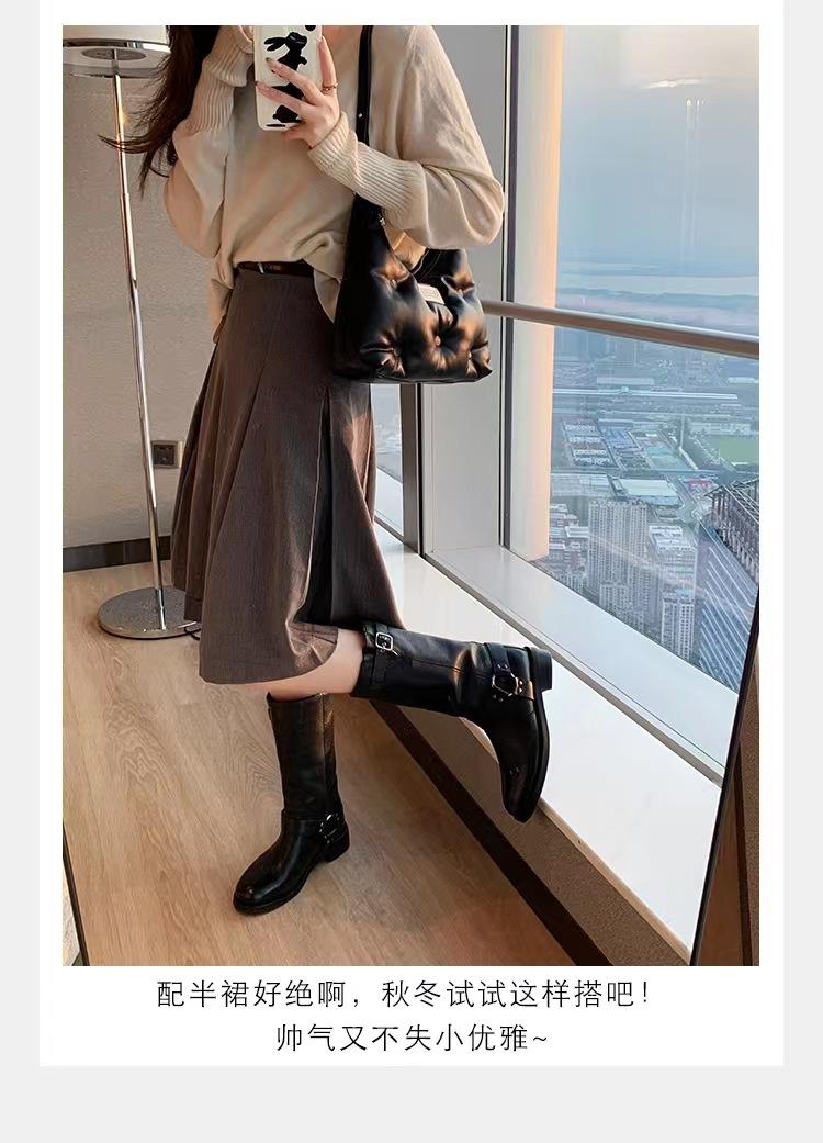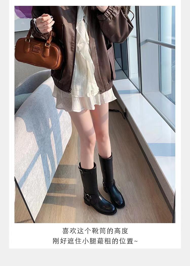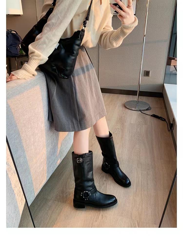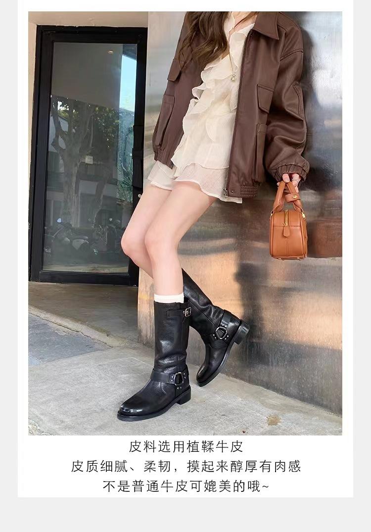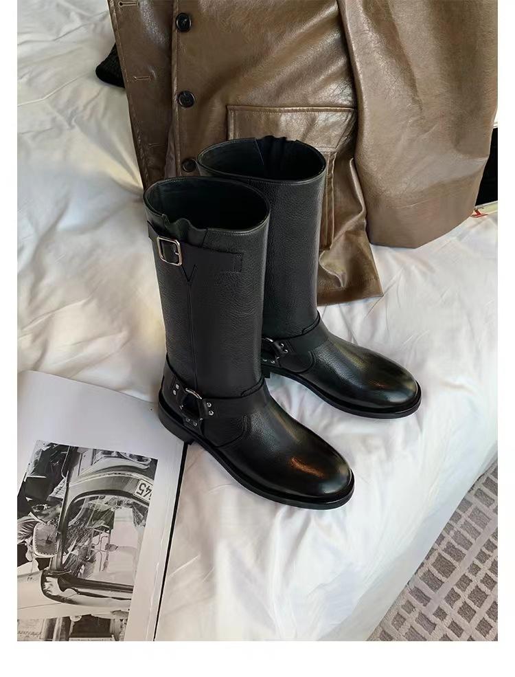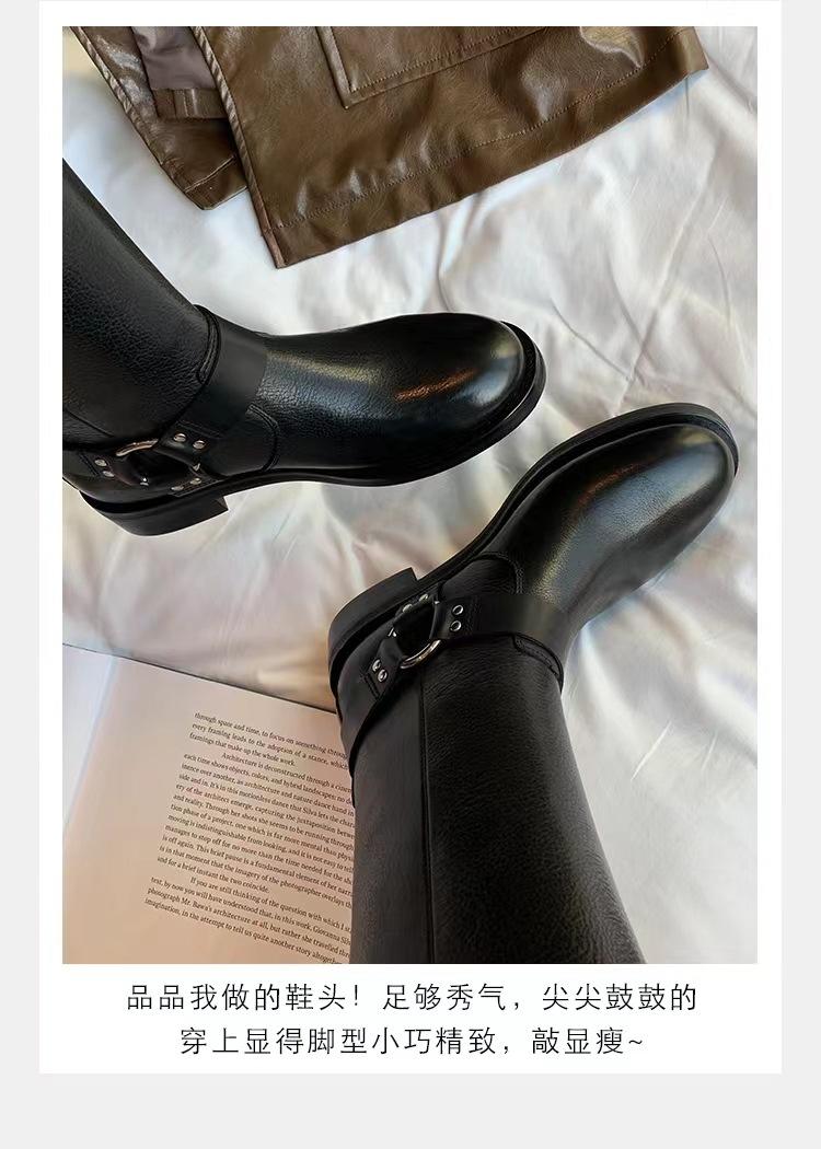 Bota de media caña con hebilla retro francesa, curtida vegetalmente, nueva colección otoño-invierno 2023 para mujer