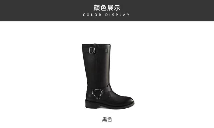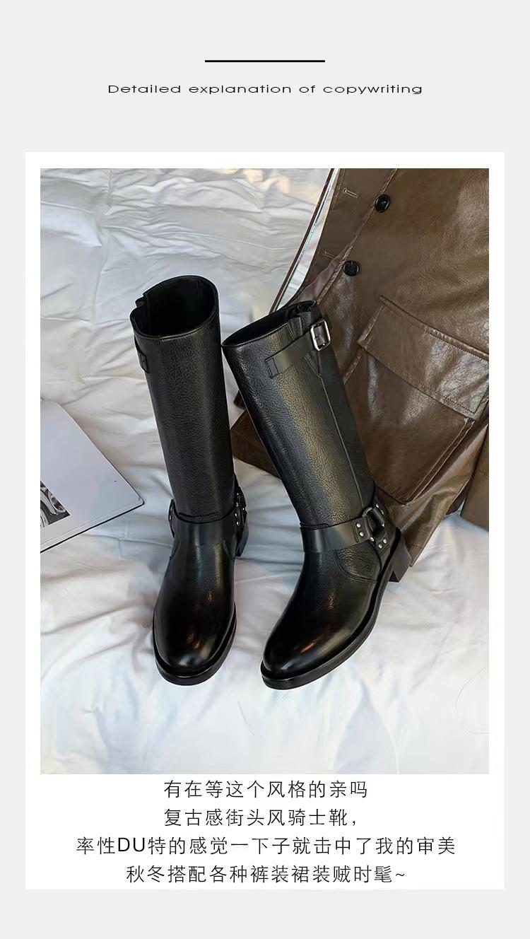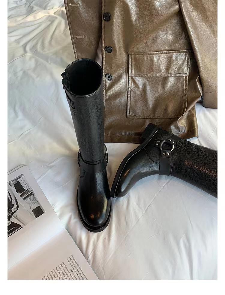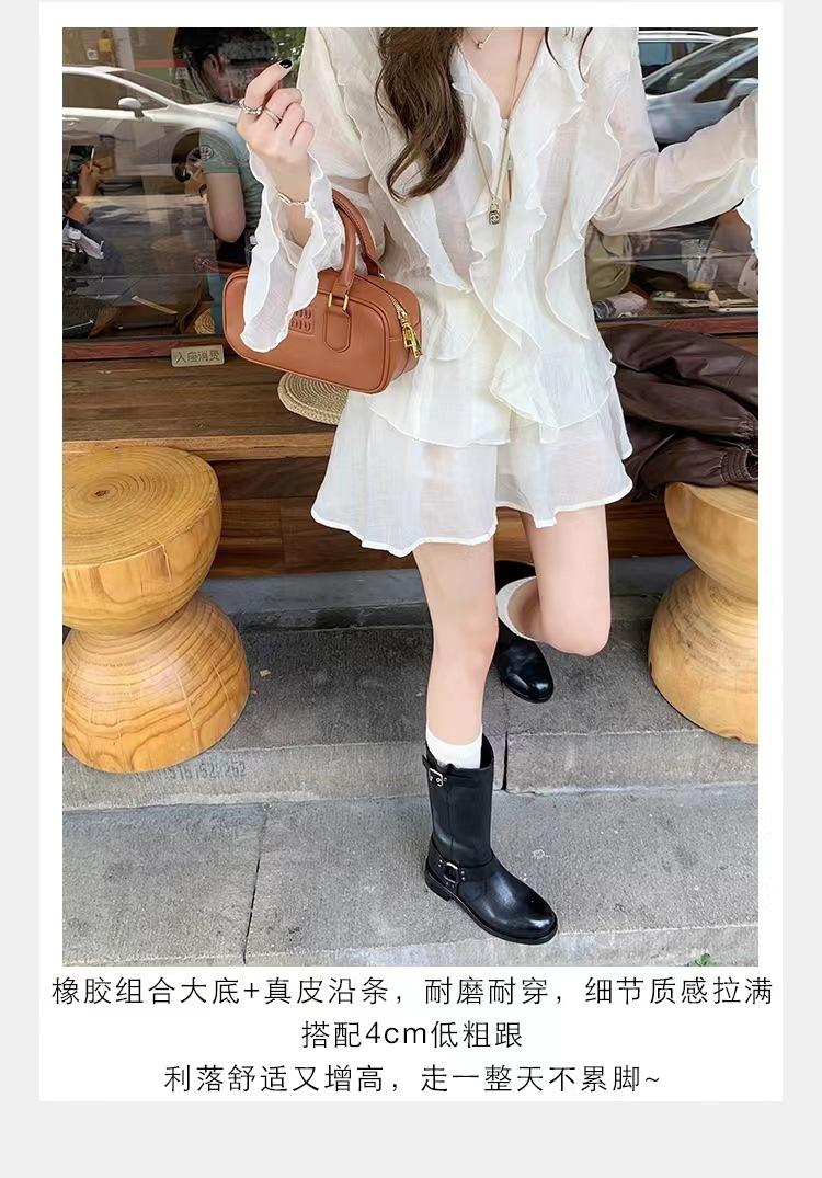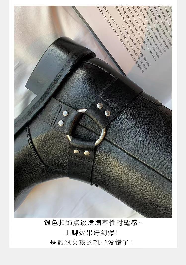 Bota de media caña con hebilla retro francesa, curtida vegetalmente, nueva colección otoño-invierno 2023 para mujer