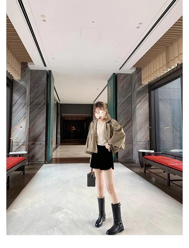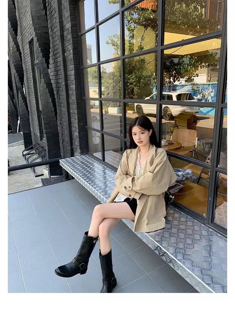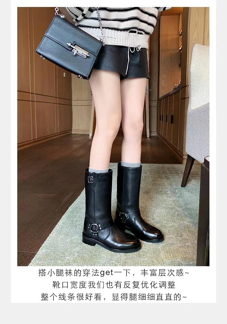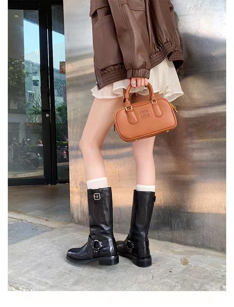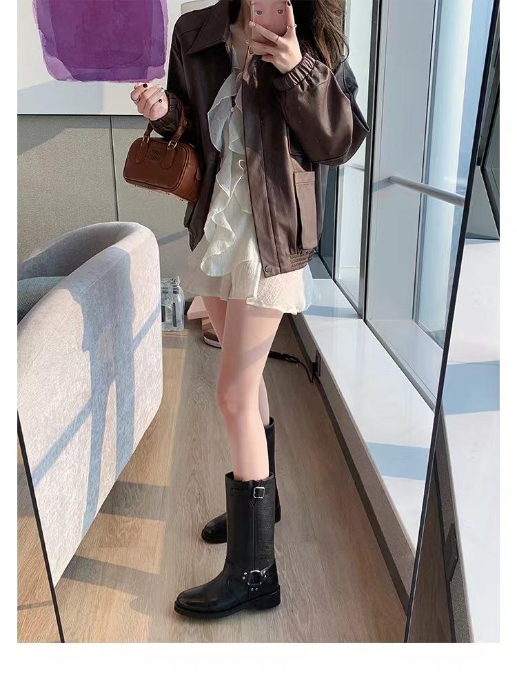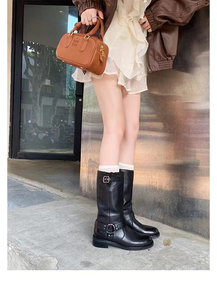 Bota de media caña con hebilla retro francesa, curtida vegetalmente, nueva colección otoño-invierno 2023 para mujer