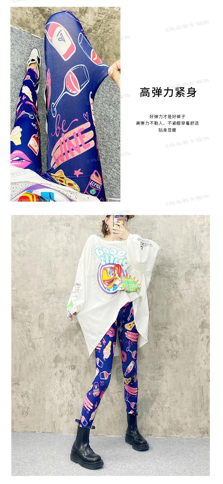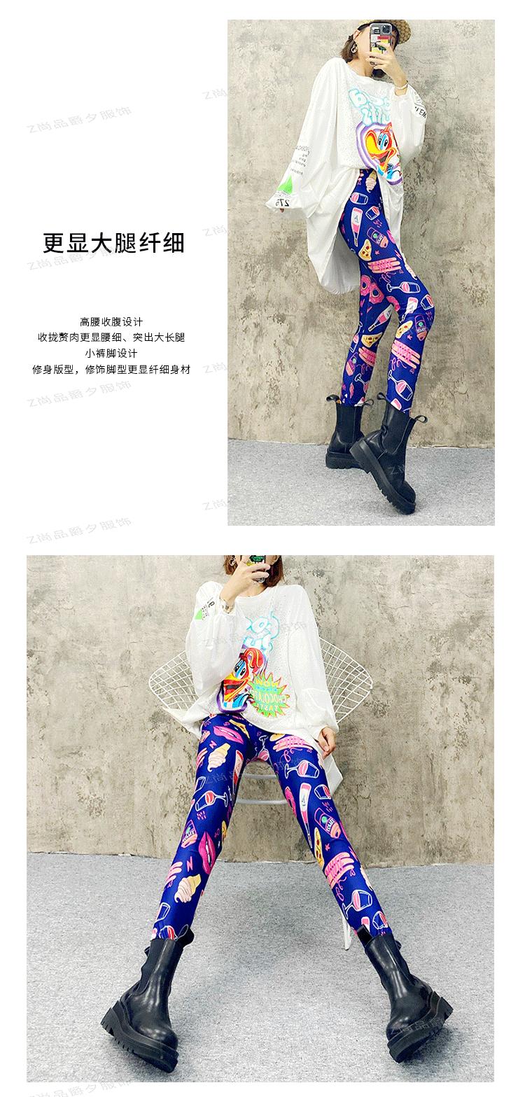 Leggings de Mujer de Nuevo Estilo para Ropa Exterior, Elásticos de Cintura Alta, Estampado Personalizado, Pantalones Cortos Adelgazantes Europeos y Americanos, Mallas de Yoga Coloridas