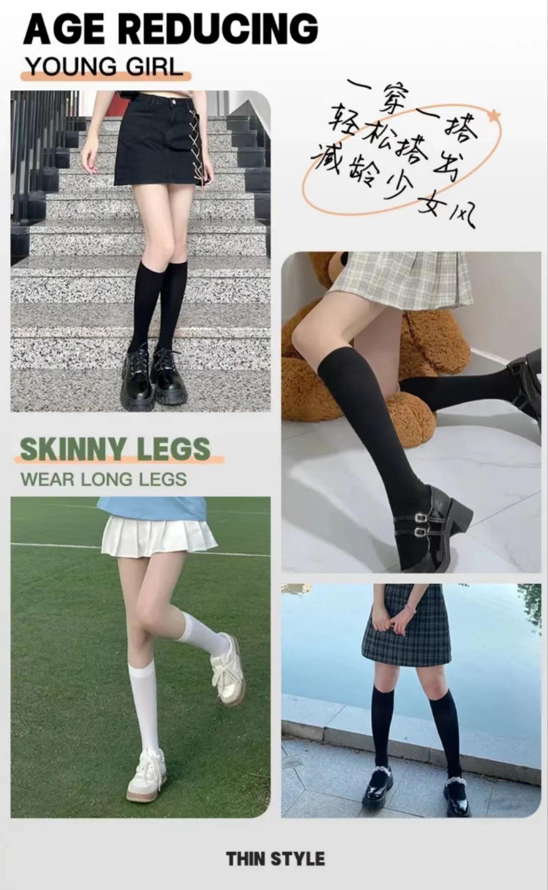 Black mid-calf, Black calf, Black over the knee, White mid-calf, White Calf, White over the knee