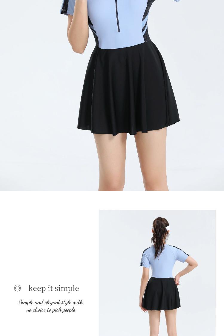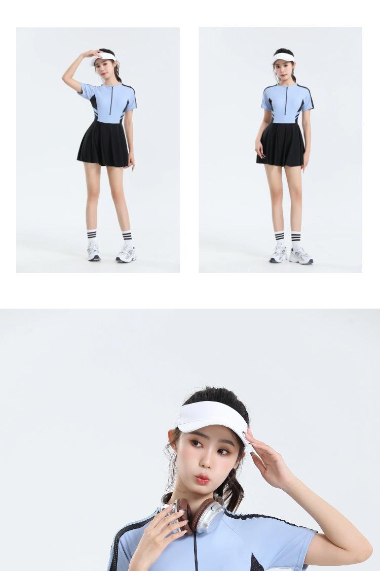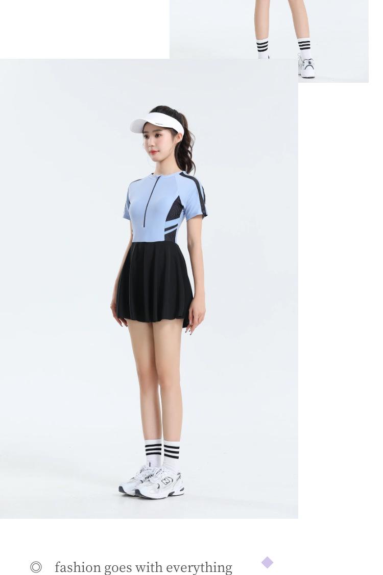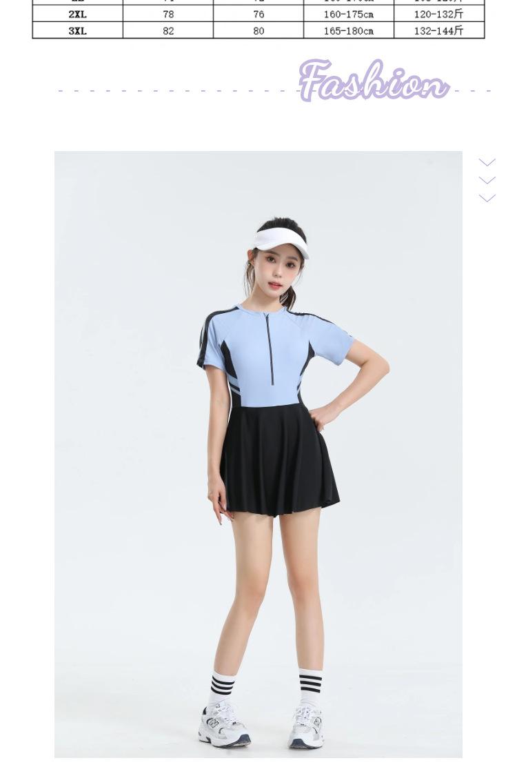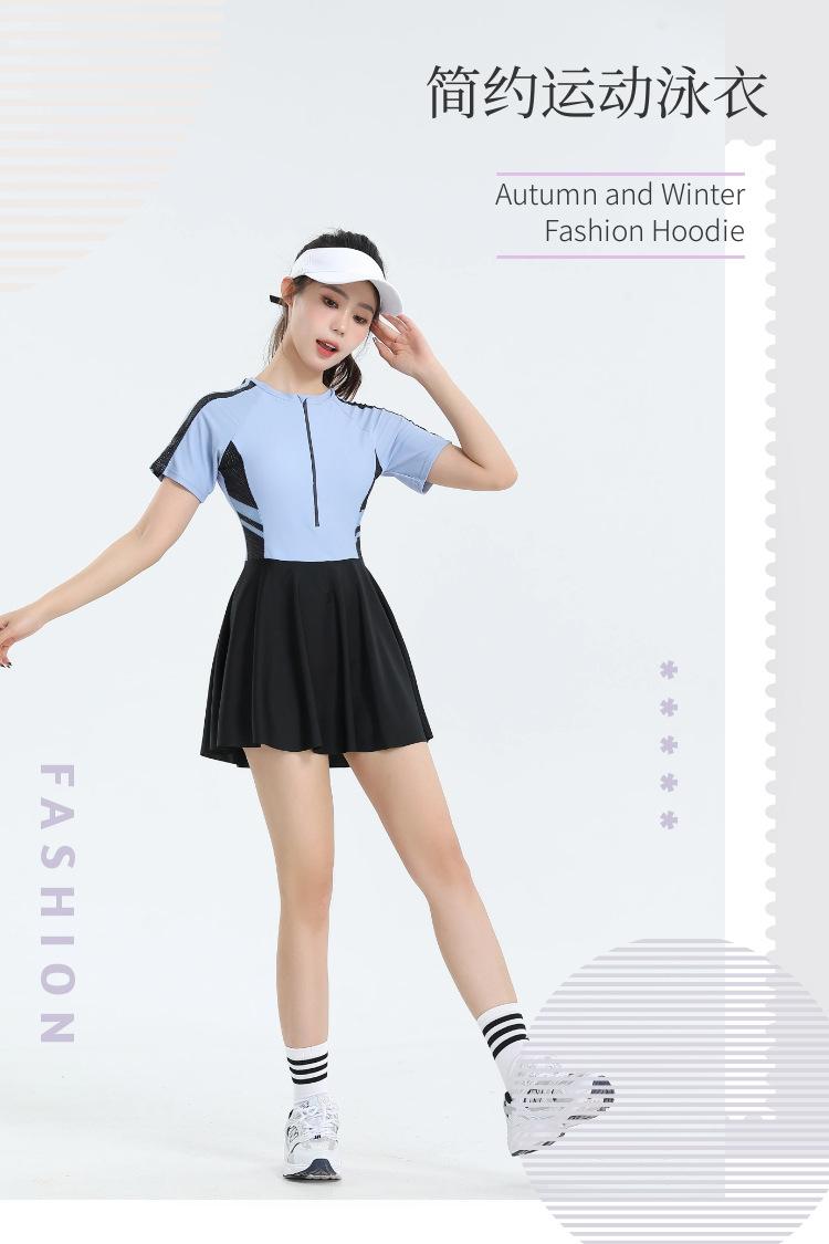 Traje de baño nuevo 2025, falda deportiva para mujer, estudiante, de una pieza, de moda, conservador, de vientre caliente, ajustado, de secado rápido, pequeño y fresco.