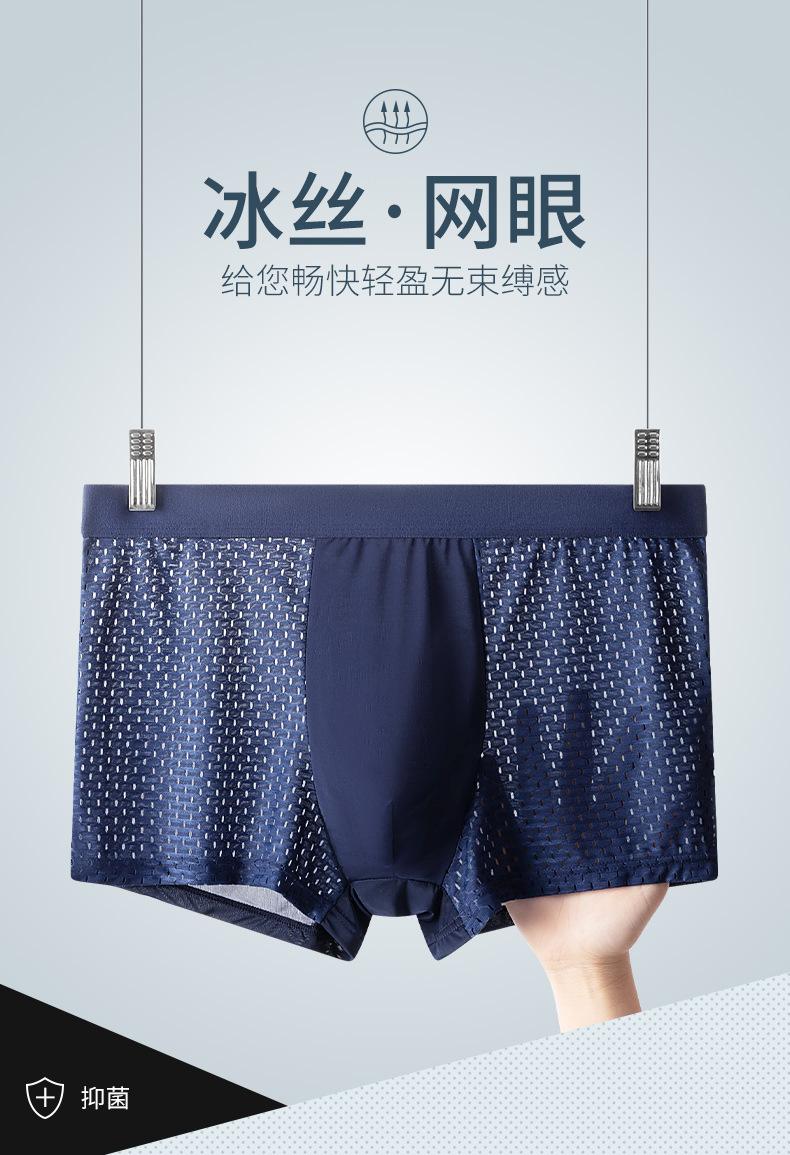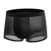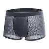 Ropa interior de malla de seda de hielo para hombre, venta al por mayor, malla completa, media malla, transpirable, cintura media, cómodos bóxers de cuatro esquinas, fábrica de cabezas