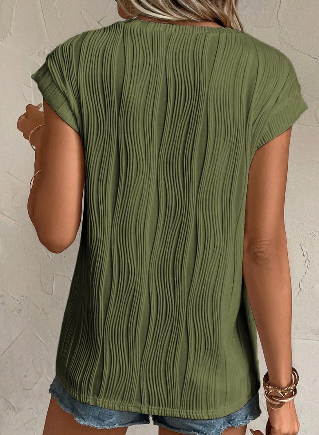 Camiseta de verano de color liso con cuello redondo y manga corta de Amazon 2024 para mujer, ropa de comercio exterior transfronterizo, estilo europeo y americano.