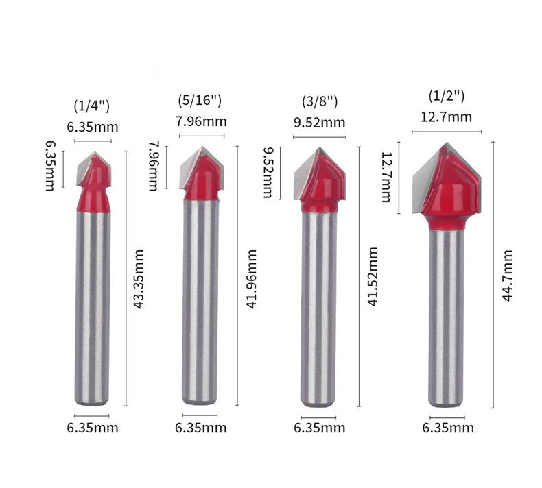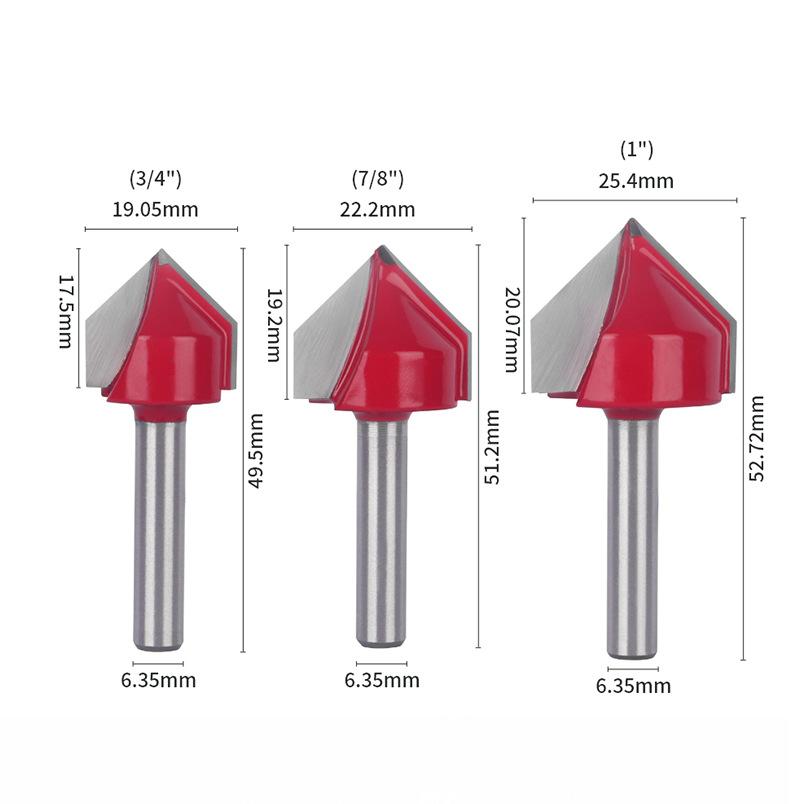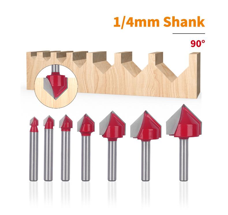 Cortador en V de 90 grados mango de 1/4 multi-juego cortador de grabado tridimensional ranurador de placa de aluminio-plástico fresadora de cantos plegables de placa integrada fresa
