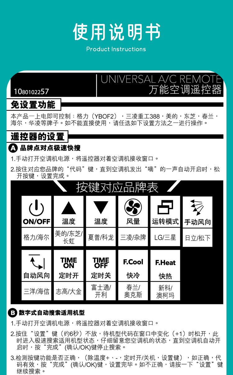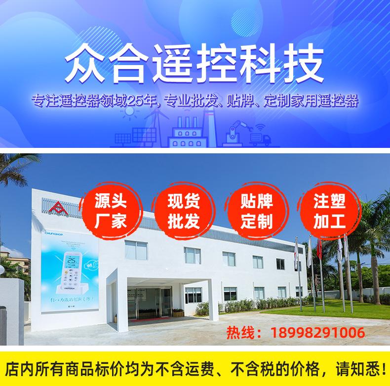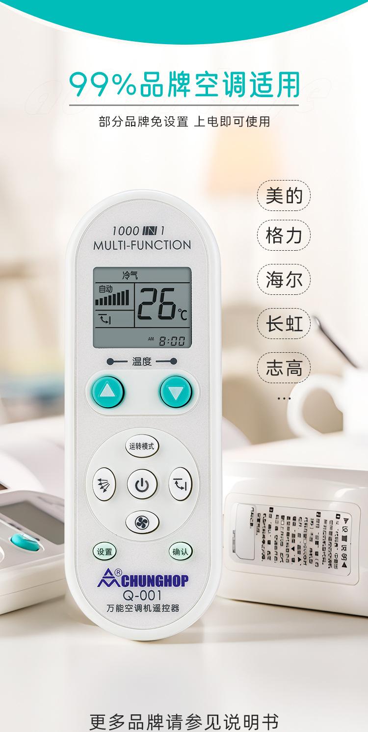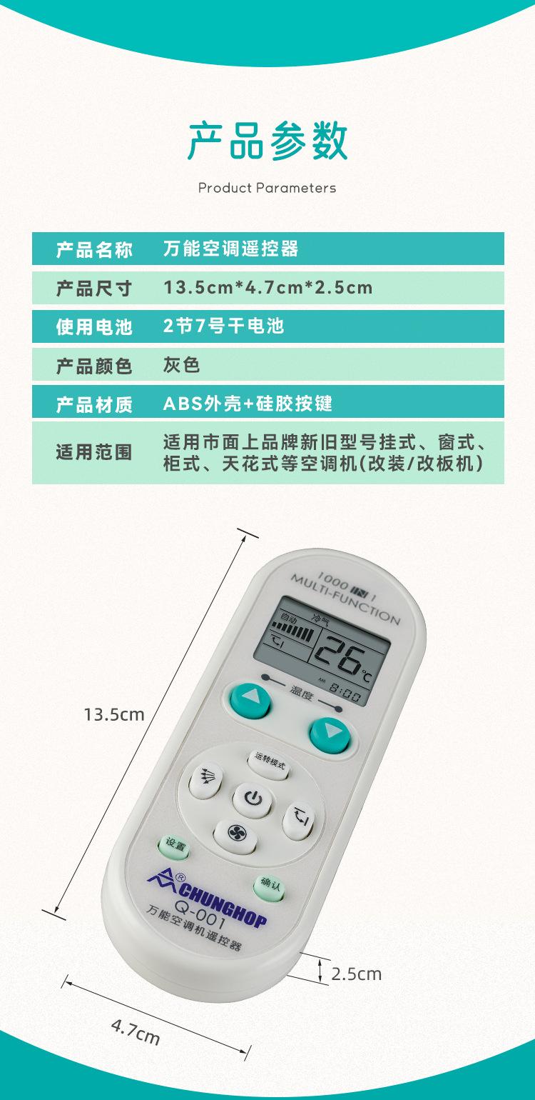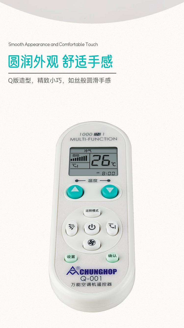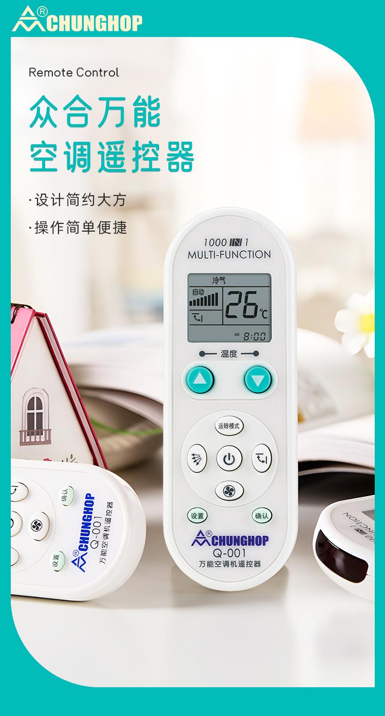 Control remoto universal infrarrojo para aire acondicionado Zhonghe, control remoto universal con botón de grado alimenticio para el hogar Q-001 en stock al por mayor