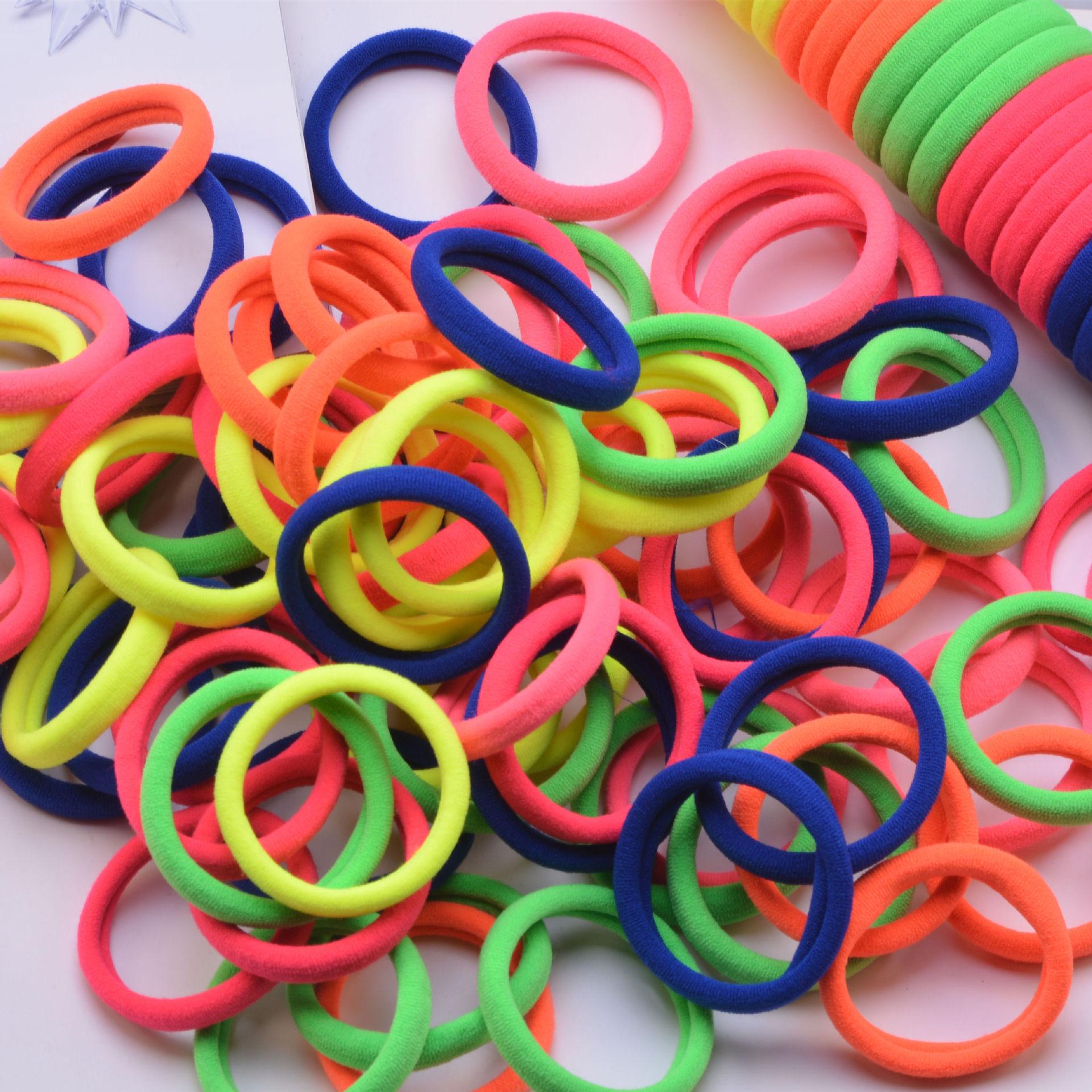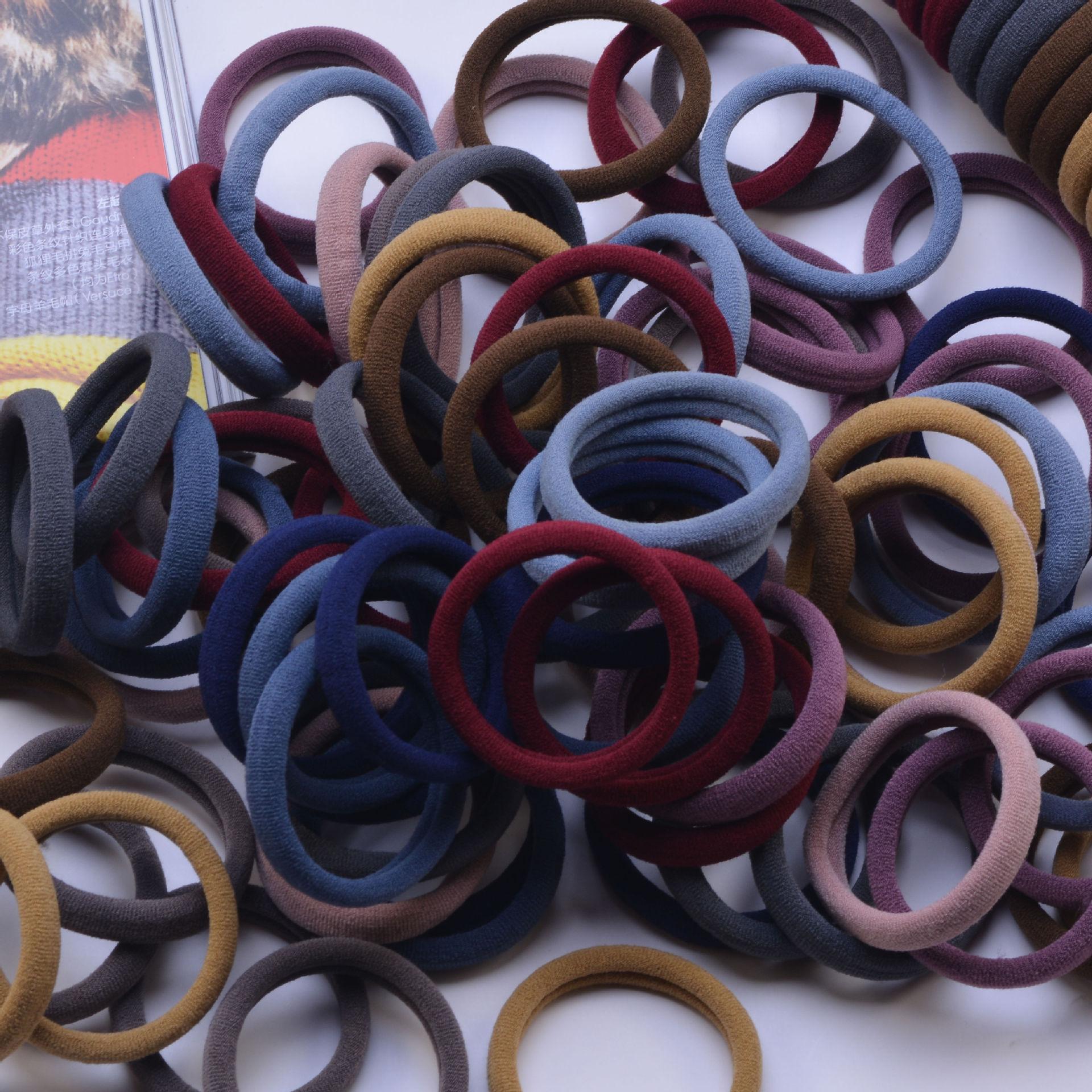 Venta al por mayor, simple, 4 cm, anillo de toalla sin costuras, banda elástica para el cabello, bolsa de cuerda para la cabeza, 100 anillos para el cabello con cola de caballo de colores mezclados