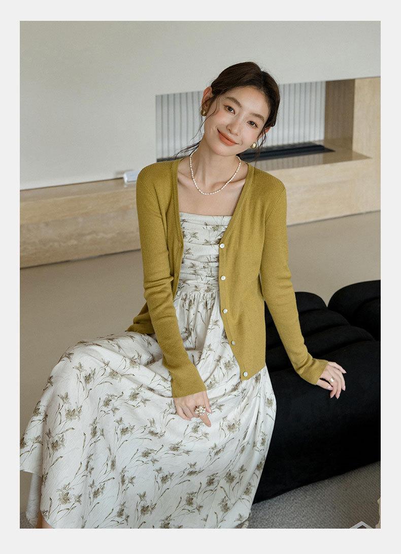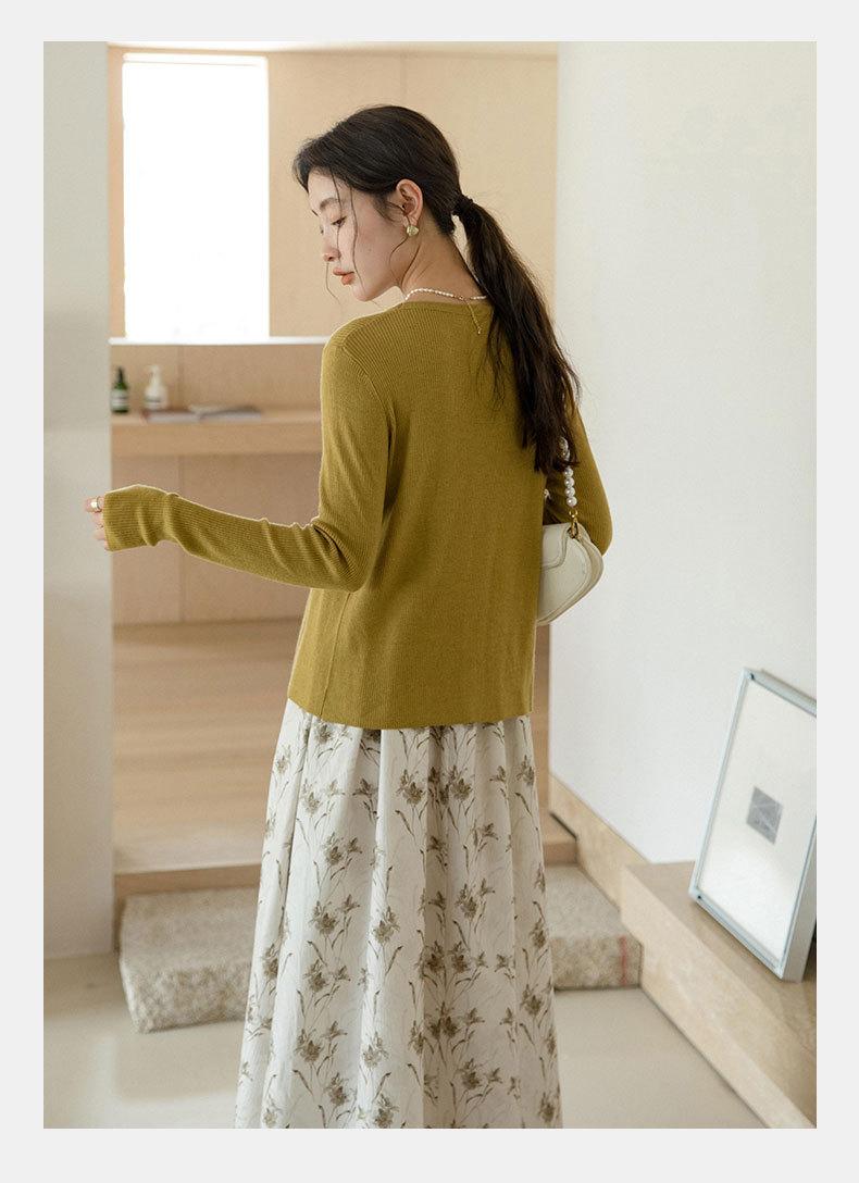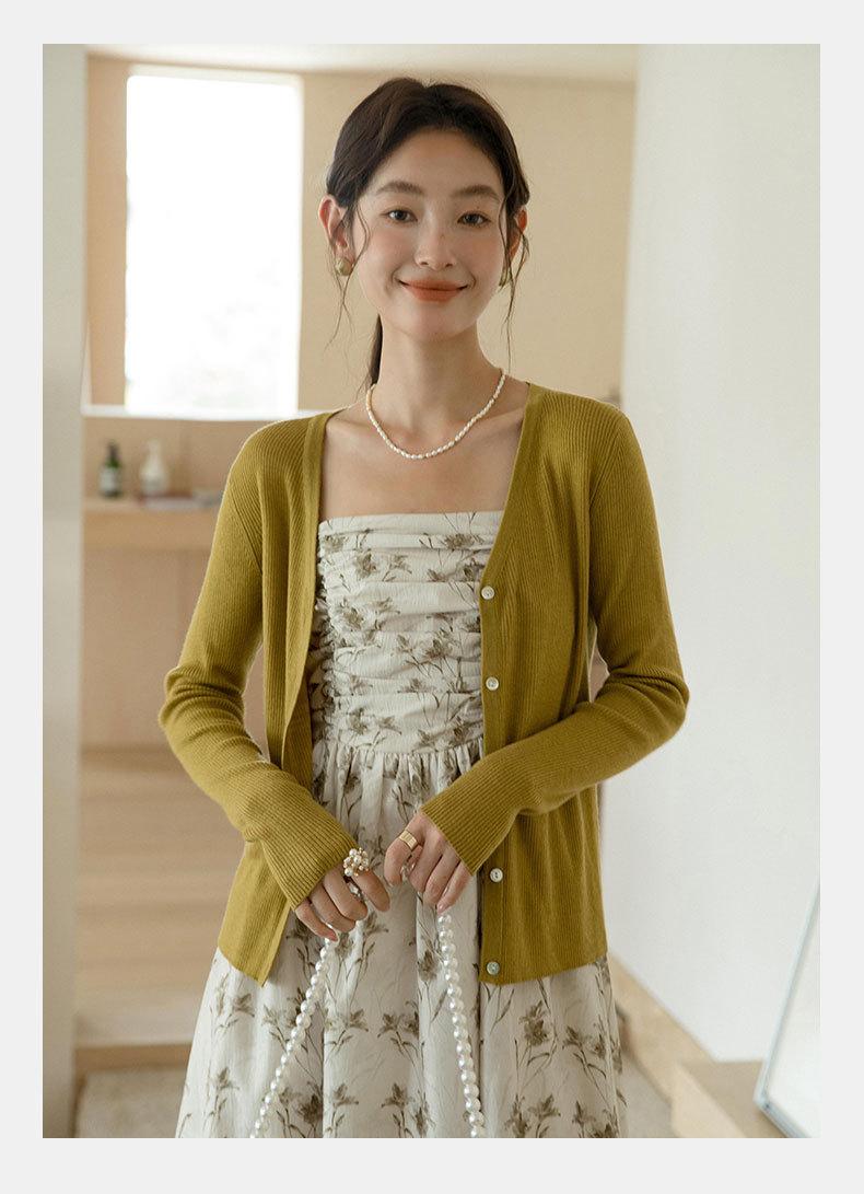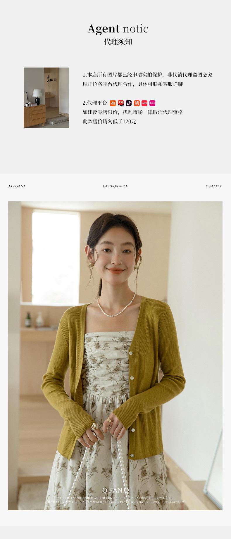 Qifan Otoño Nuevo Cárdigan de Punto Casual Francés con Cuello en V Chal de Mujer Casual Más Fácil de Combinar Top Protección Solar 81710
