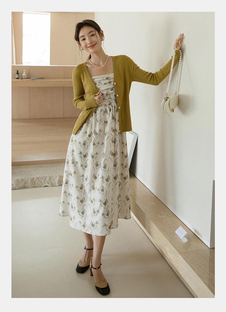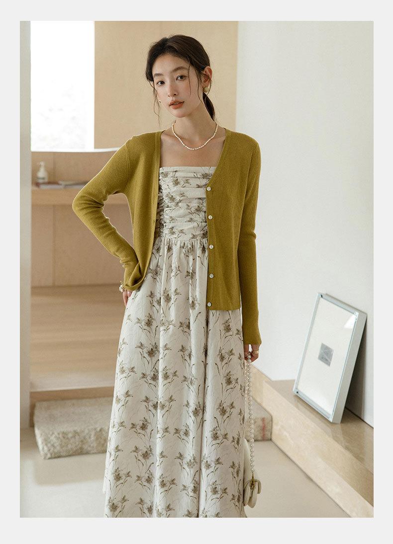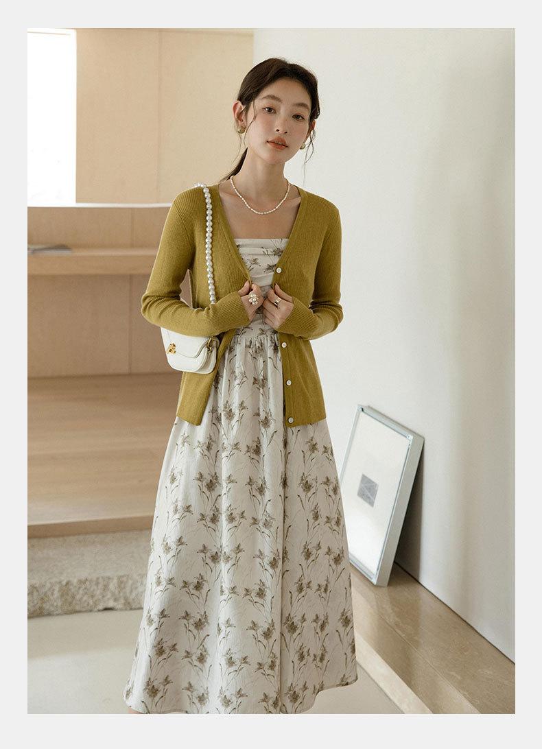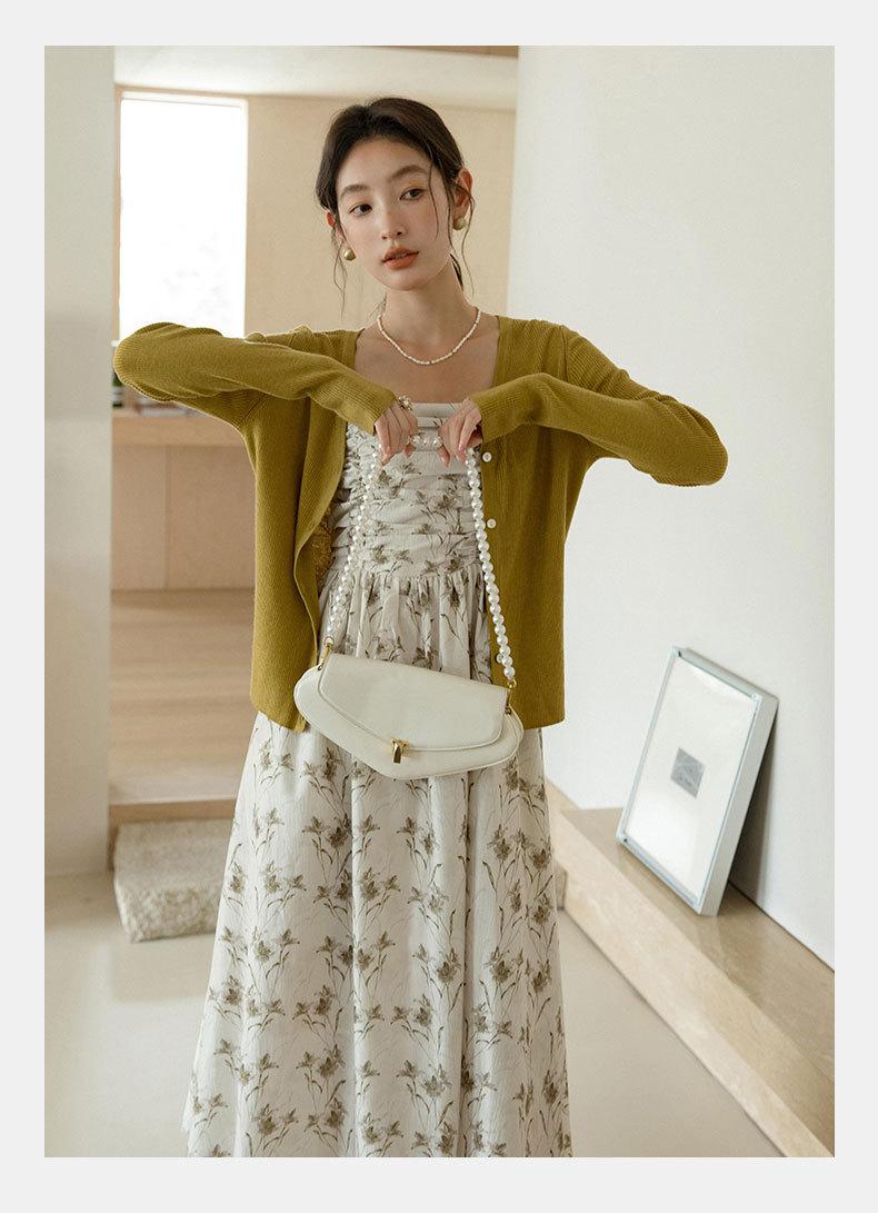 Qifan Otoño Nuevo Cárdigan de Punto Casual Francés con Cuello en V Chal de Mujer Casual Más Fácil de Combinar Top Protección Solar 81710
