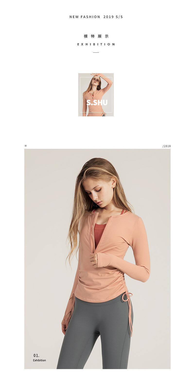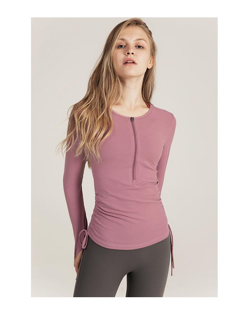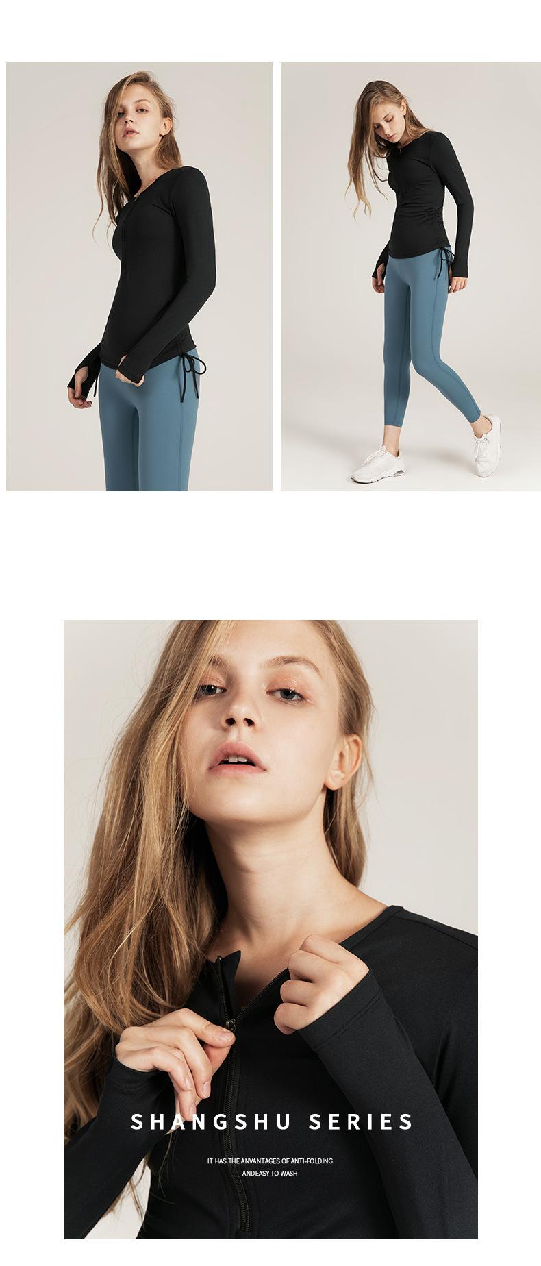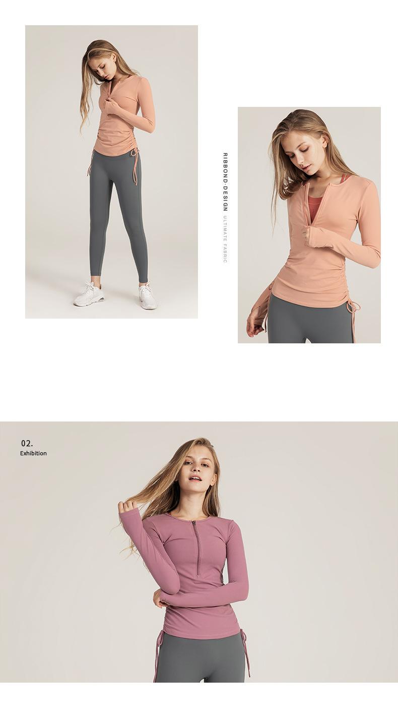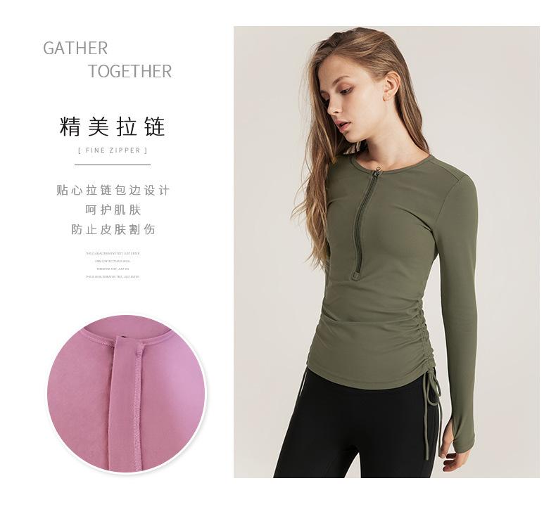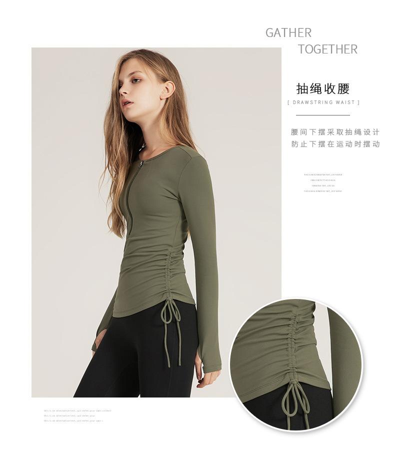 Ropa de yoga con cordón para otoño e invierno, estilo europeo y americano, informal, ajustada, de secado rápido, para correr, con cremallera, ropa deportiva de fitness, manga larga para mujer