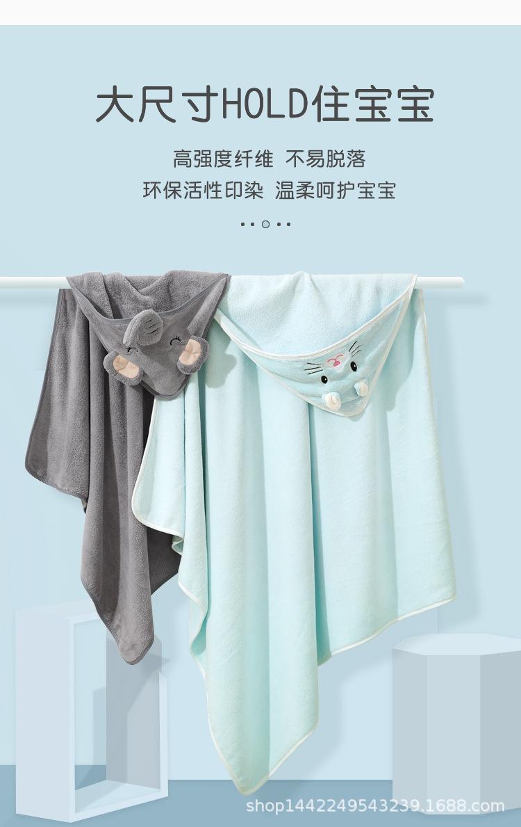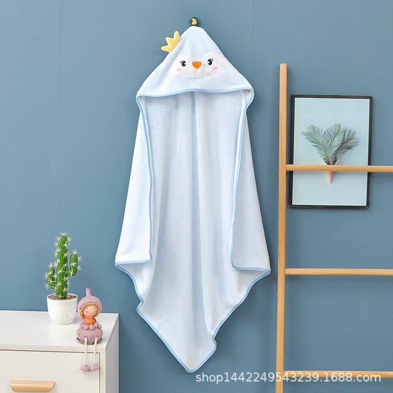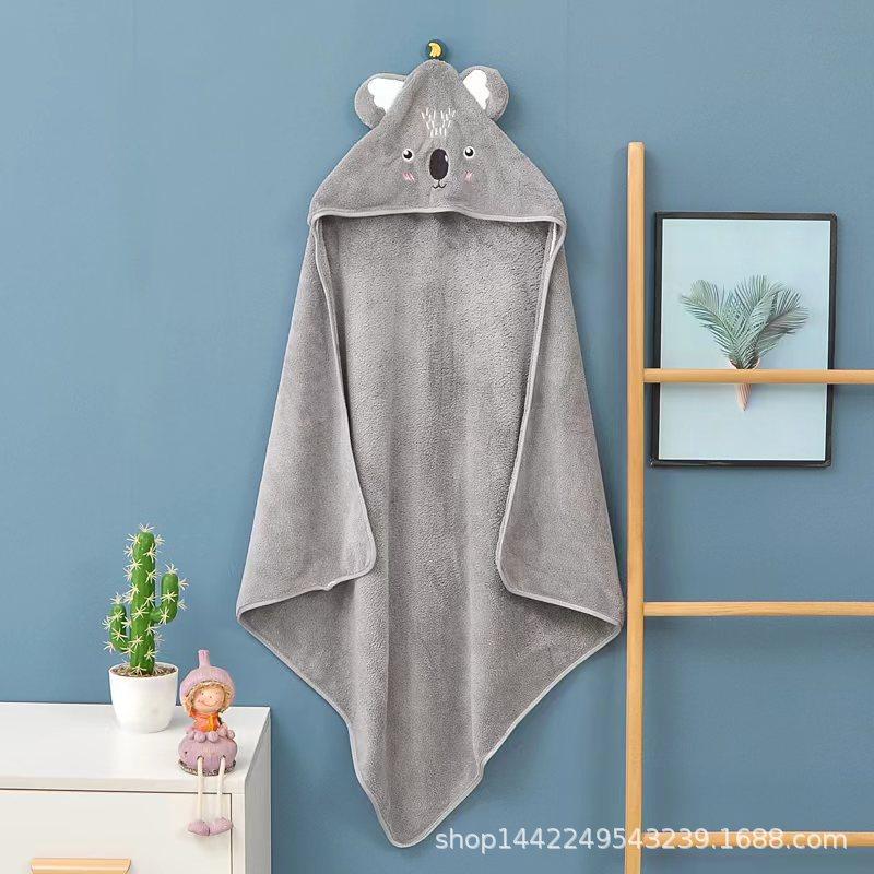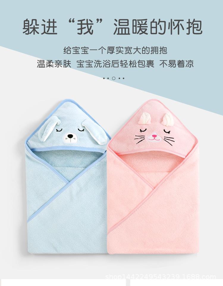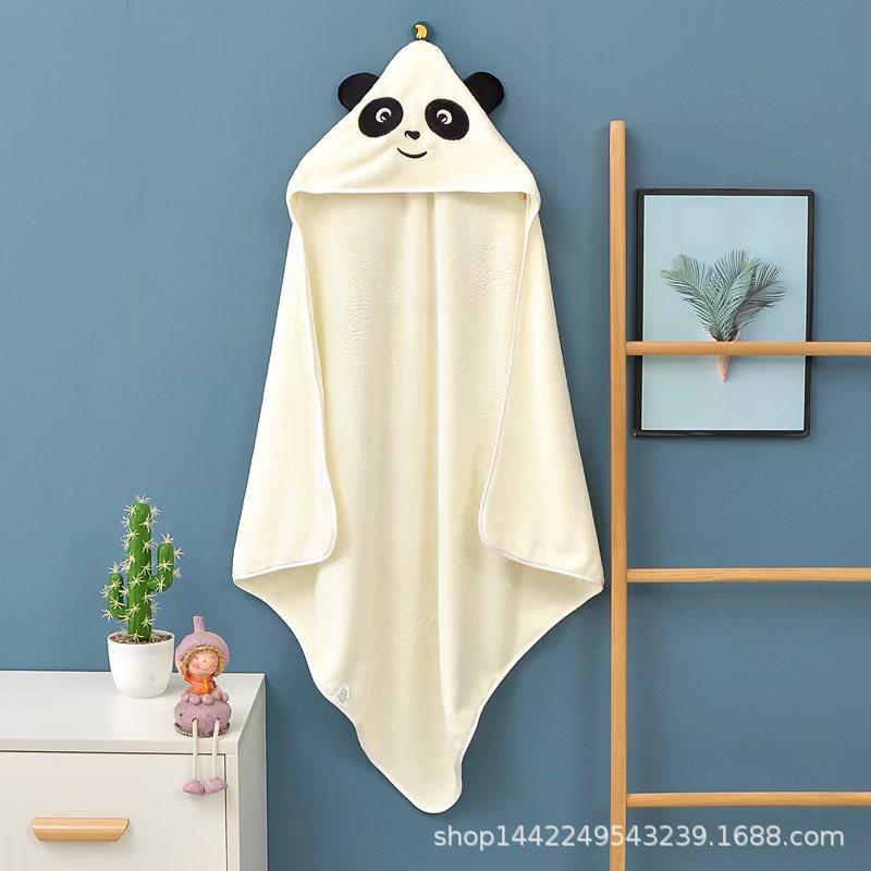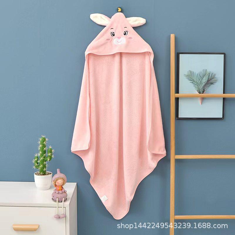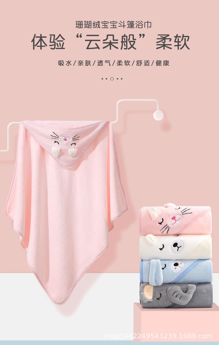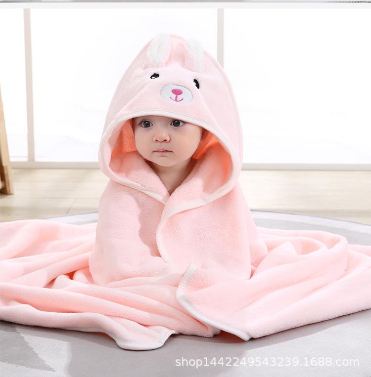 Toalla de baño infantil de vellón coral, toalla de baño, bolsa para bebé recién nacido, capa absorbente de dibujos animados gruesa con capucha