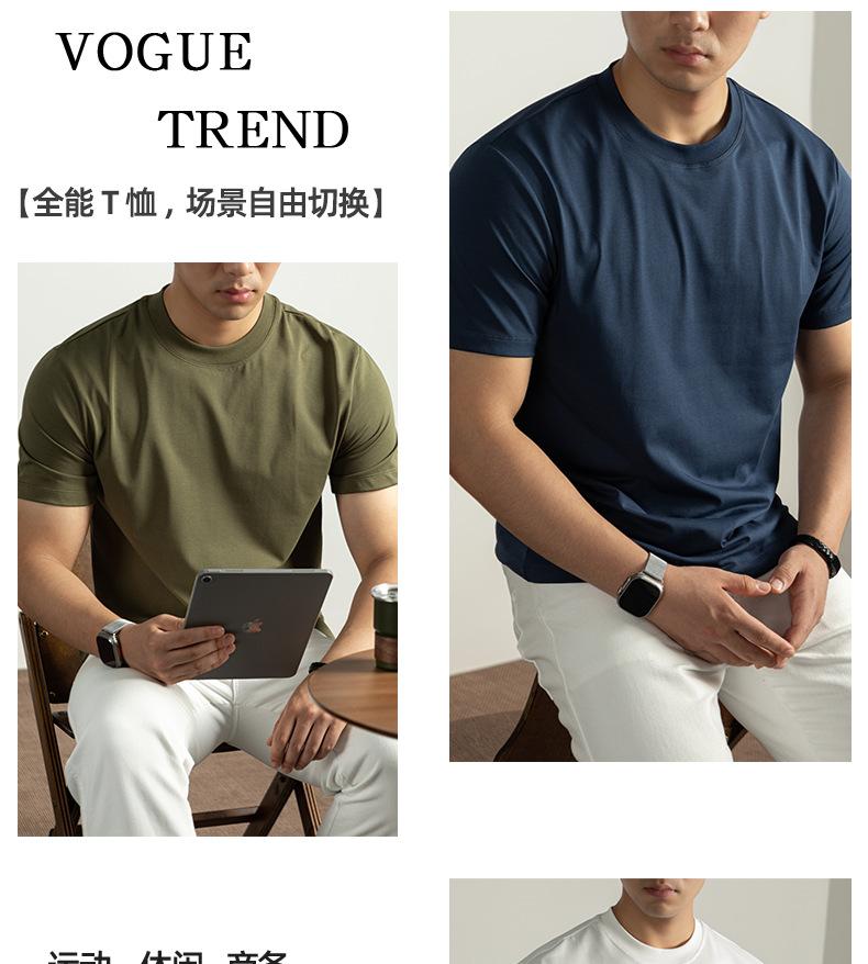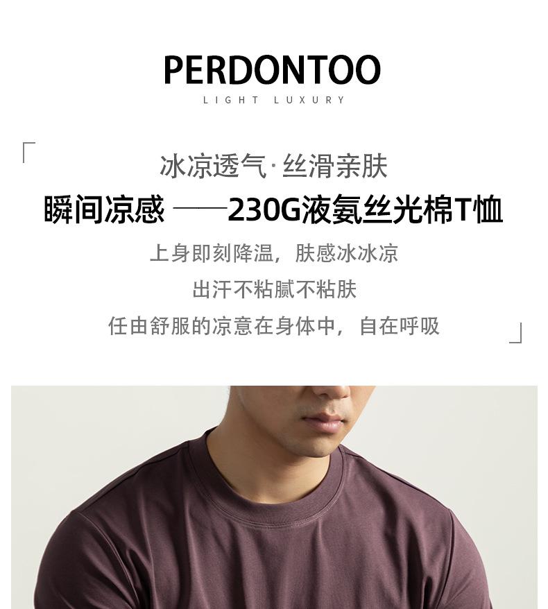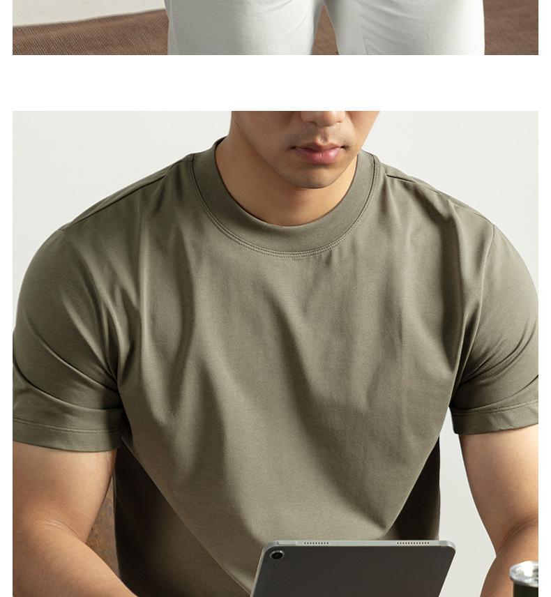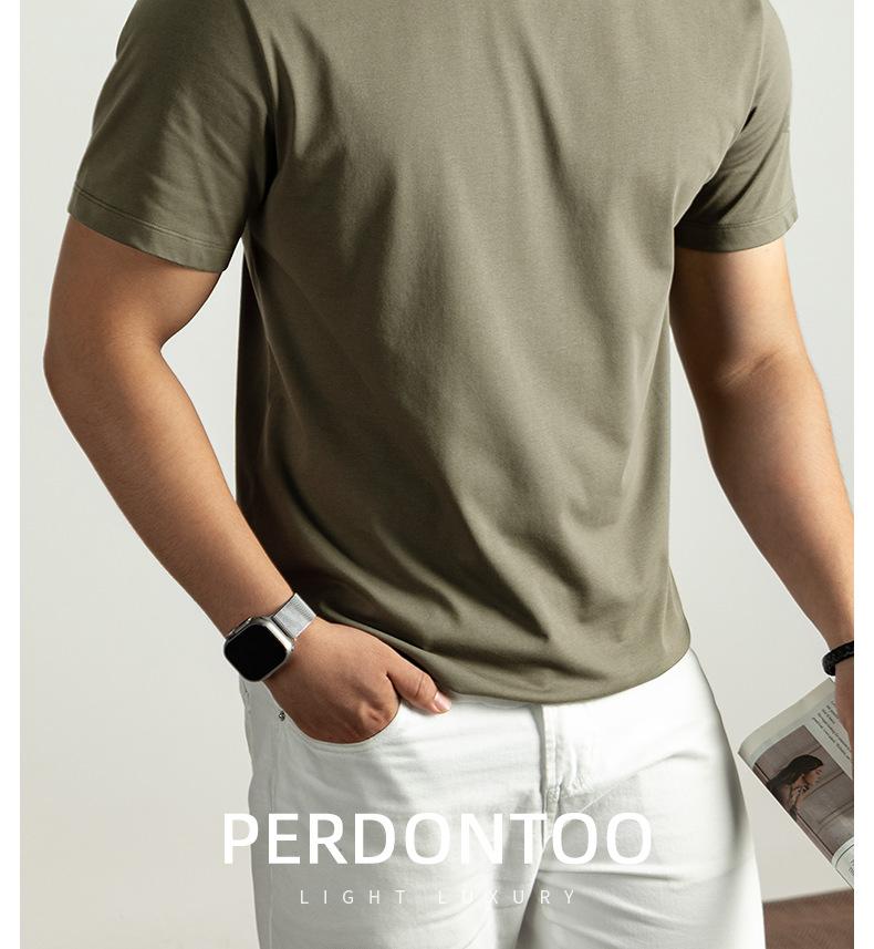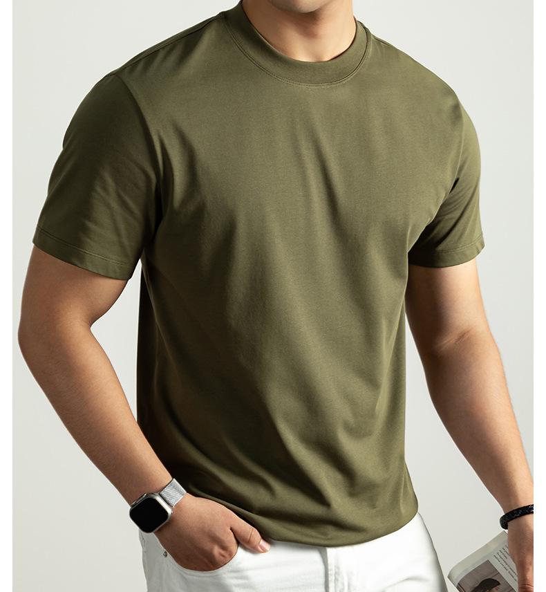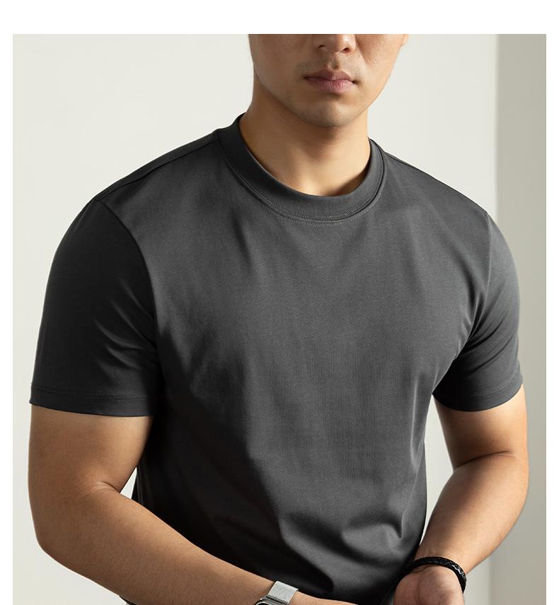 "Top Luxury" 230g Camiseta de Algodón Mercerizado Sensación Fría de Amoniaco Líquido para Hombre Verano Color Puro Sensación Fresca Transpirable Casual Manga Corta Delgada