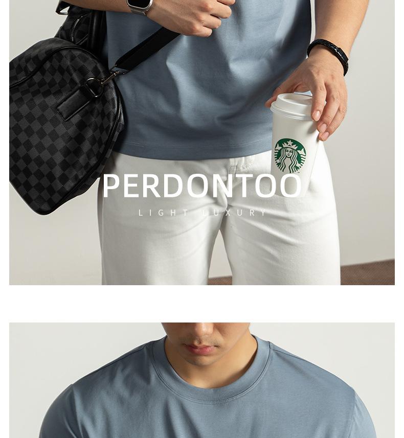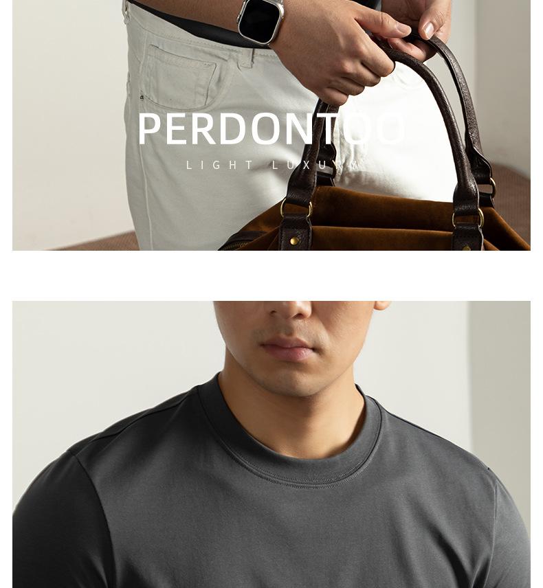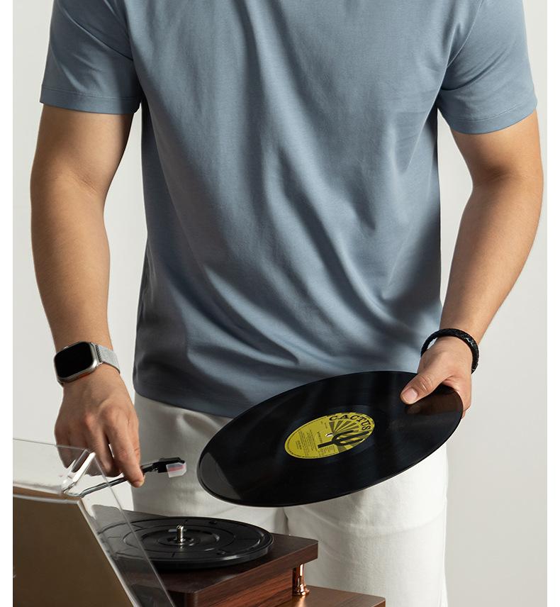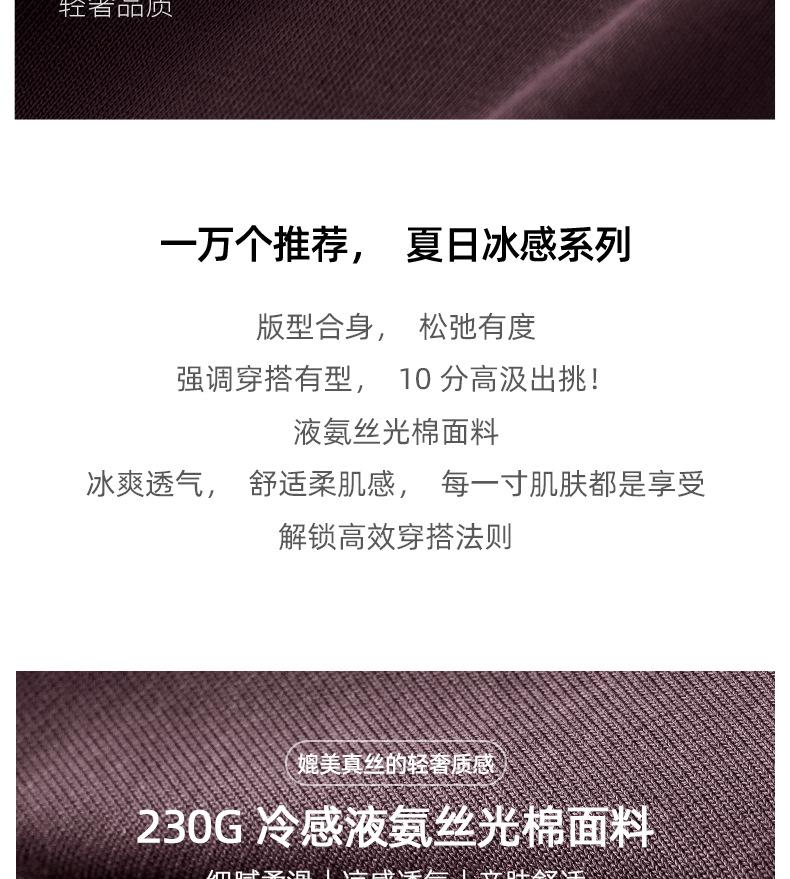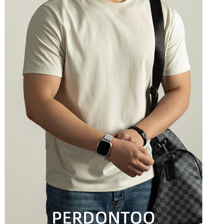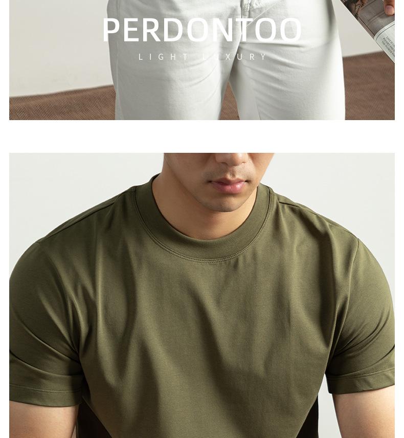 "Top Luxury" 230g Camiseta de Algodón Mercerizado Sensación Fría de Amoniaco Líquido para Hombre Verano Color Puro Sensación Fresca Transpirable Casual Manga Corta Delgada
