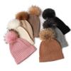 Otoño e Invierno Nuevo Estilo Coreano Sombrero Cálido Decorativo con Bola de Piel de Mapache Color Puro Punto Acanalado Sombrero de Cachemira para Mujer Personalizado de Fábrica