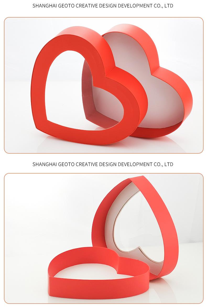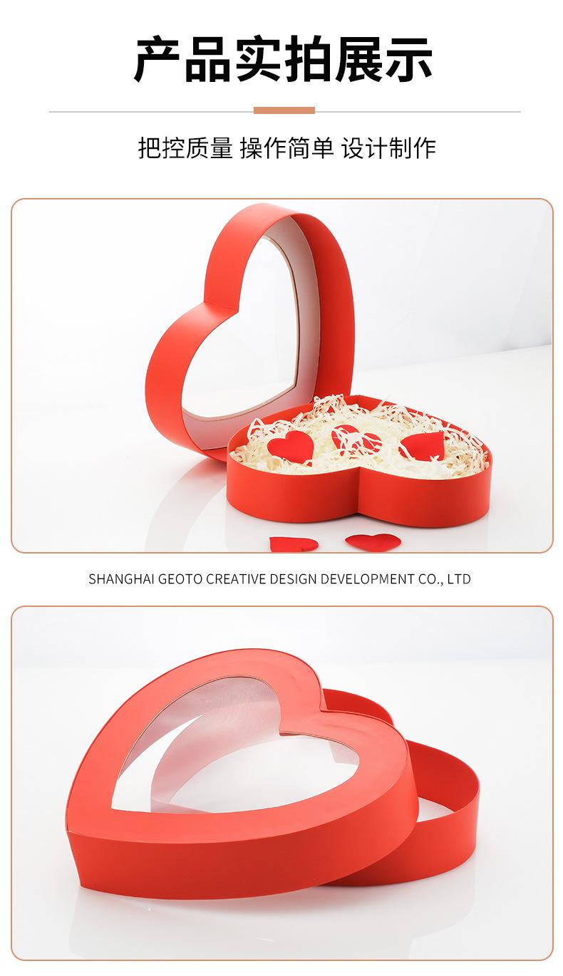 Caja de regalo con forma de corazón para San Valentín, con chocolates, dulces y flores, ventana transparente abierta, embalaje de boda de alta gama, personalizable.