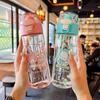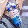 Vaso doble de gran capacidad con correa de dibujos animados, vaso de agua de plástico, vaso doble de usos múltiples, vaso con pajita para niña, creativo