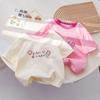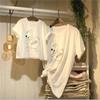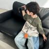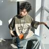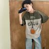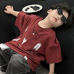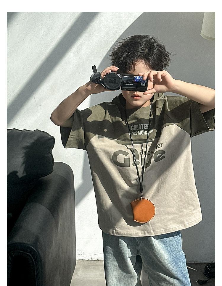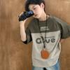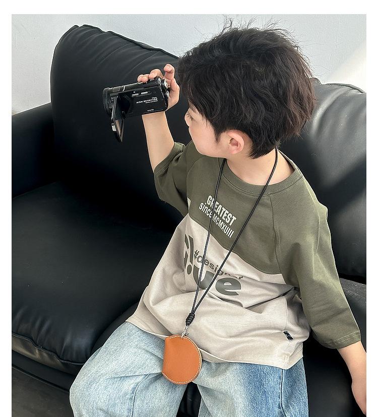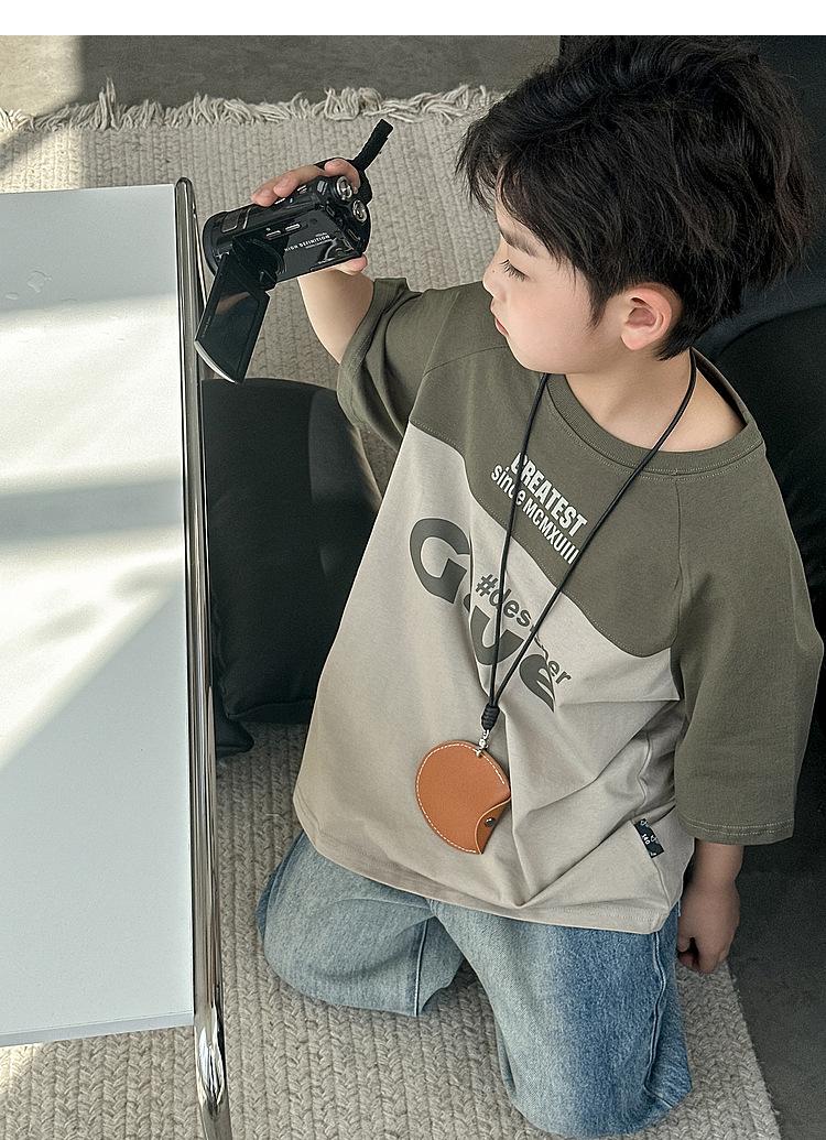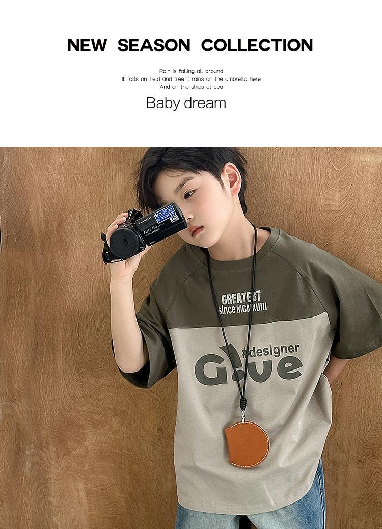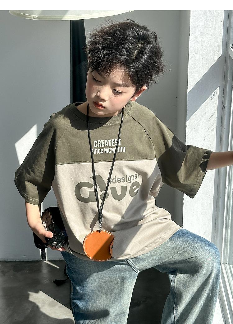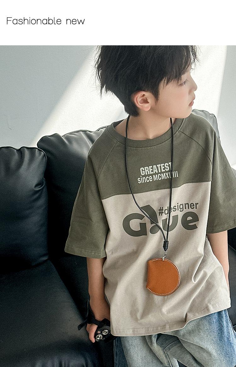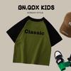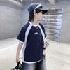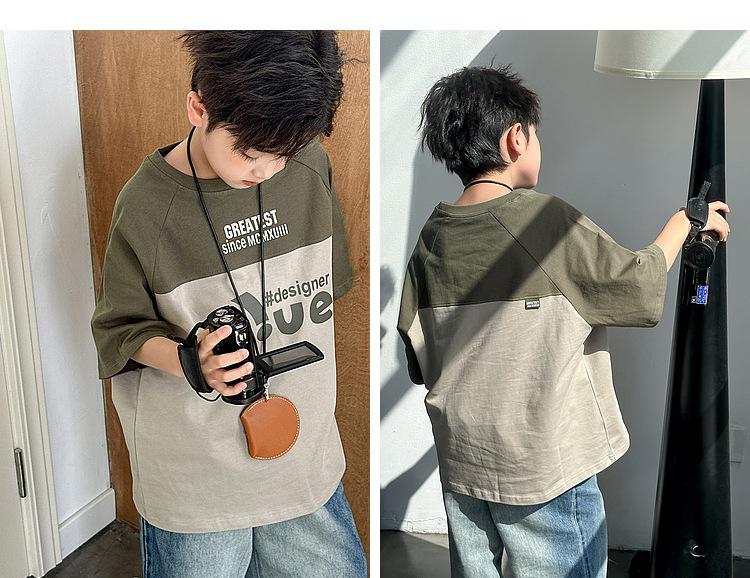Ropa de verano para niños 2024 nueva para niños manga corta estilo coreano infantil estilo extranjero color en contraste cuello redondo manga media camiseta holgada para niños grandes