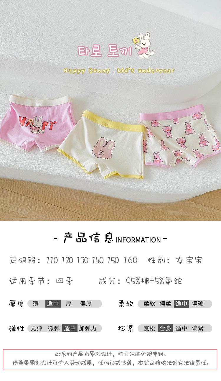 N128 Ropa Interior Infantil para Mujer al Mayoreo 25 Otoño Dibujo Animado Conejo Ropa Interior para Niña Bóxer Clase a Algodón Puro Ropa Interior para Bebé