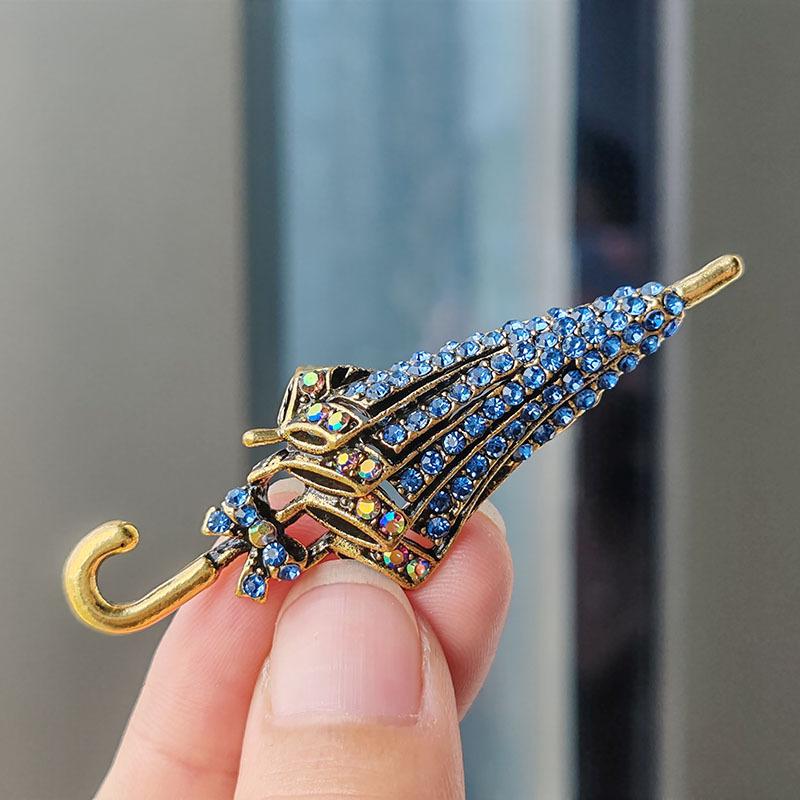 Broche de paraguas con incrustaciones de diamantes, creativo, europeo y americano, con dibujos animados, bonito broche para camisa, traje, ropa, accesorios, alfiler para cuello, ramillete de diamantes de imitación