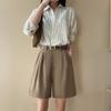 Shorts de Traje Grises para Mujer, Estilo Delgado de Verano, Pantalones A-Line Casuales Holgados de Pierna Ancha de Cintura Alta, Shorts de Largo Medio, de Cintura Alta y Adelgazantes