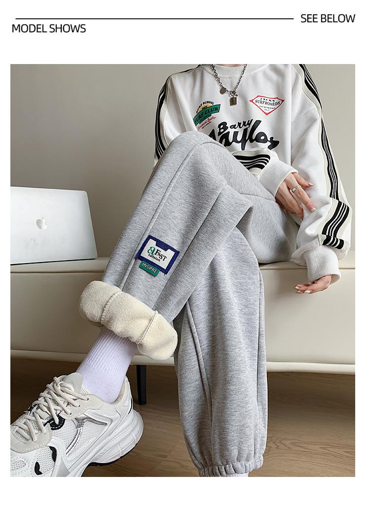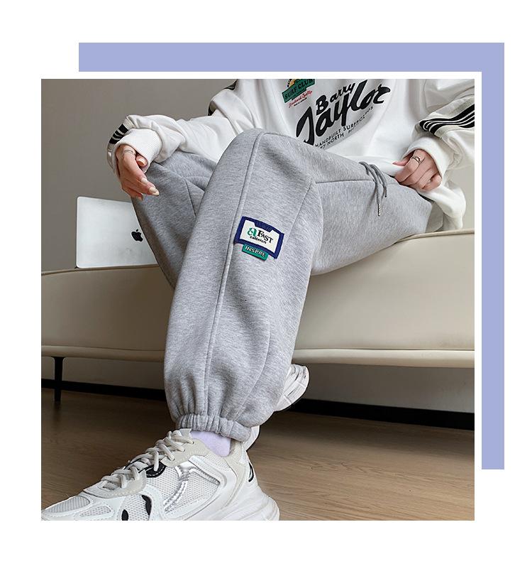 Pantalones deportivos para mujer, otoño e invierno 2025, nuevo estilo, pierna pequeña, holgados, color rábano, informales, de terciopelo gris.