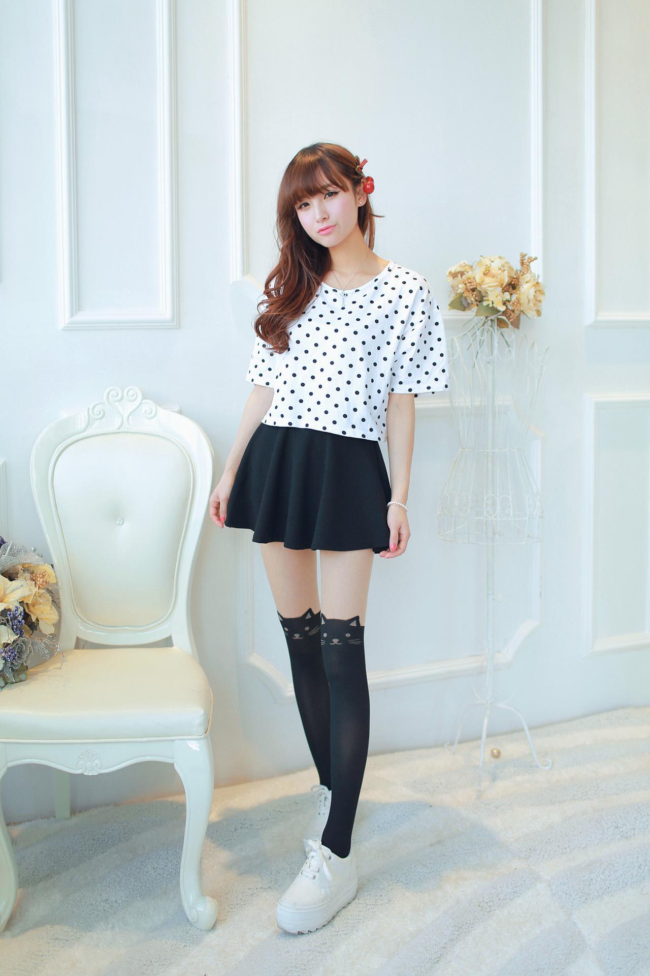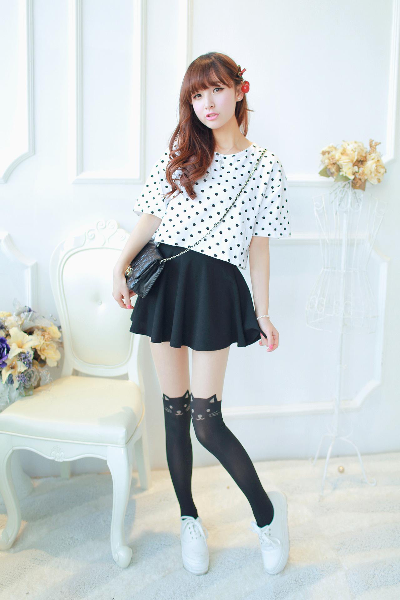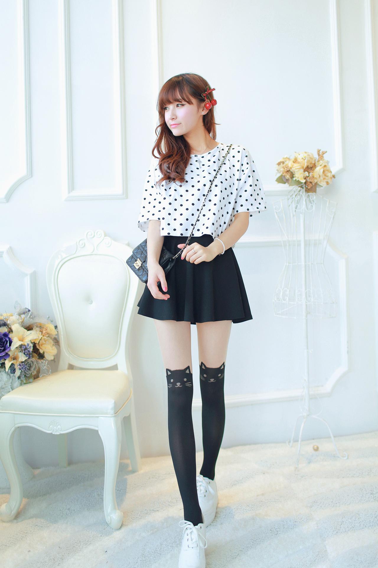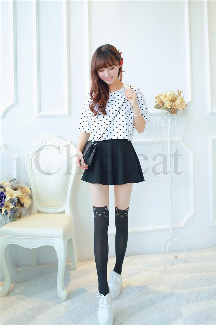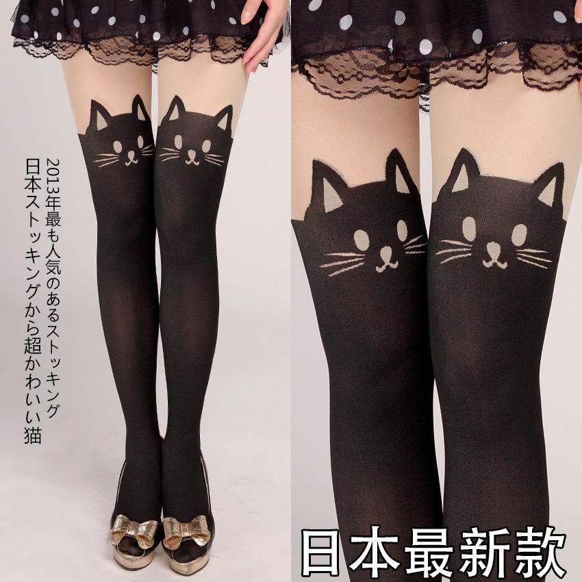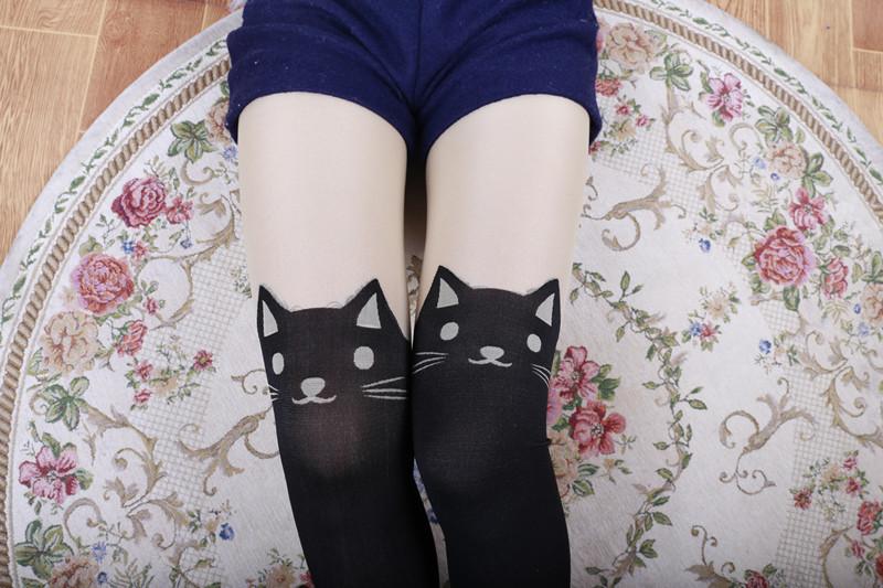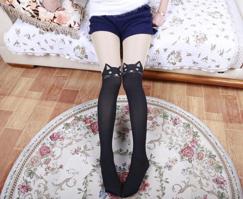 Estilo japonés falso de caña alta sobre la rodilla falso muslo caricatura falso de caña alta cola de gato costuras medias pantimedias leggings