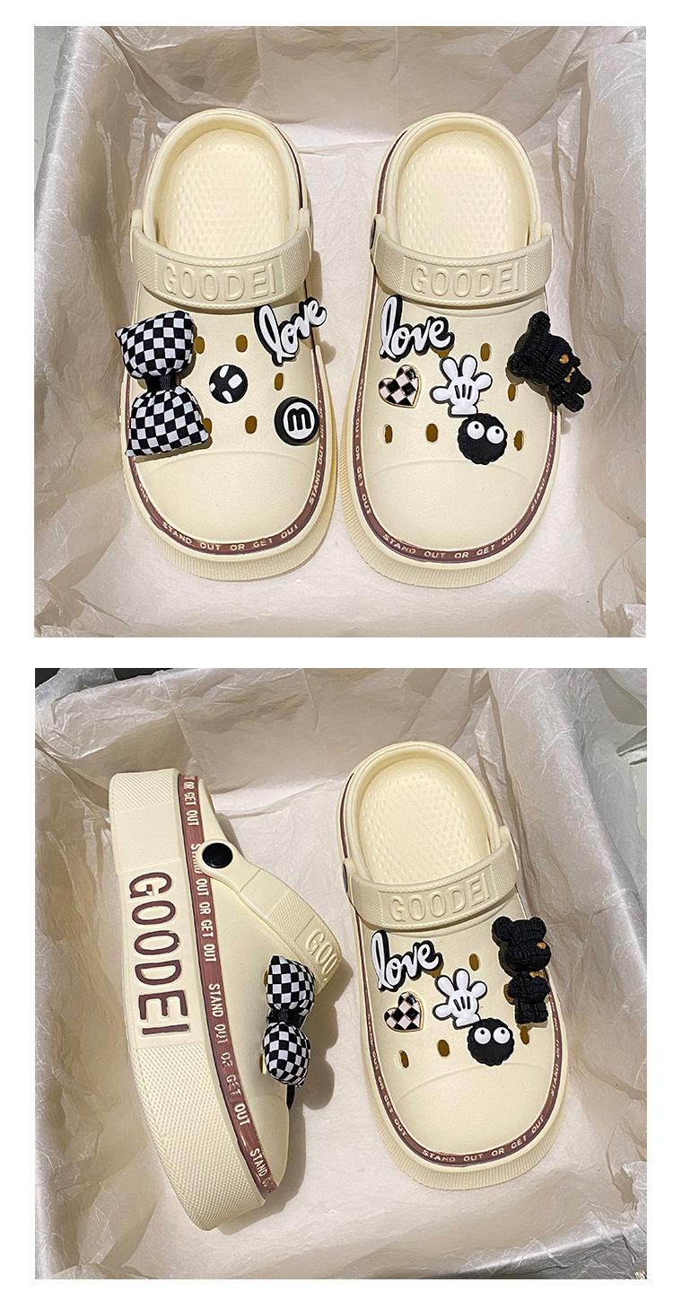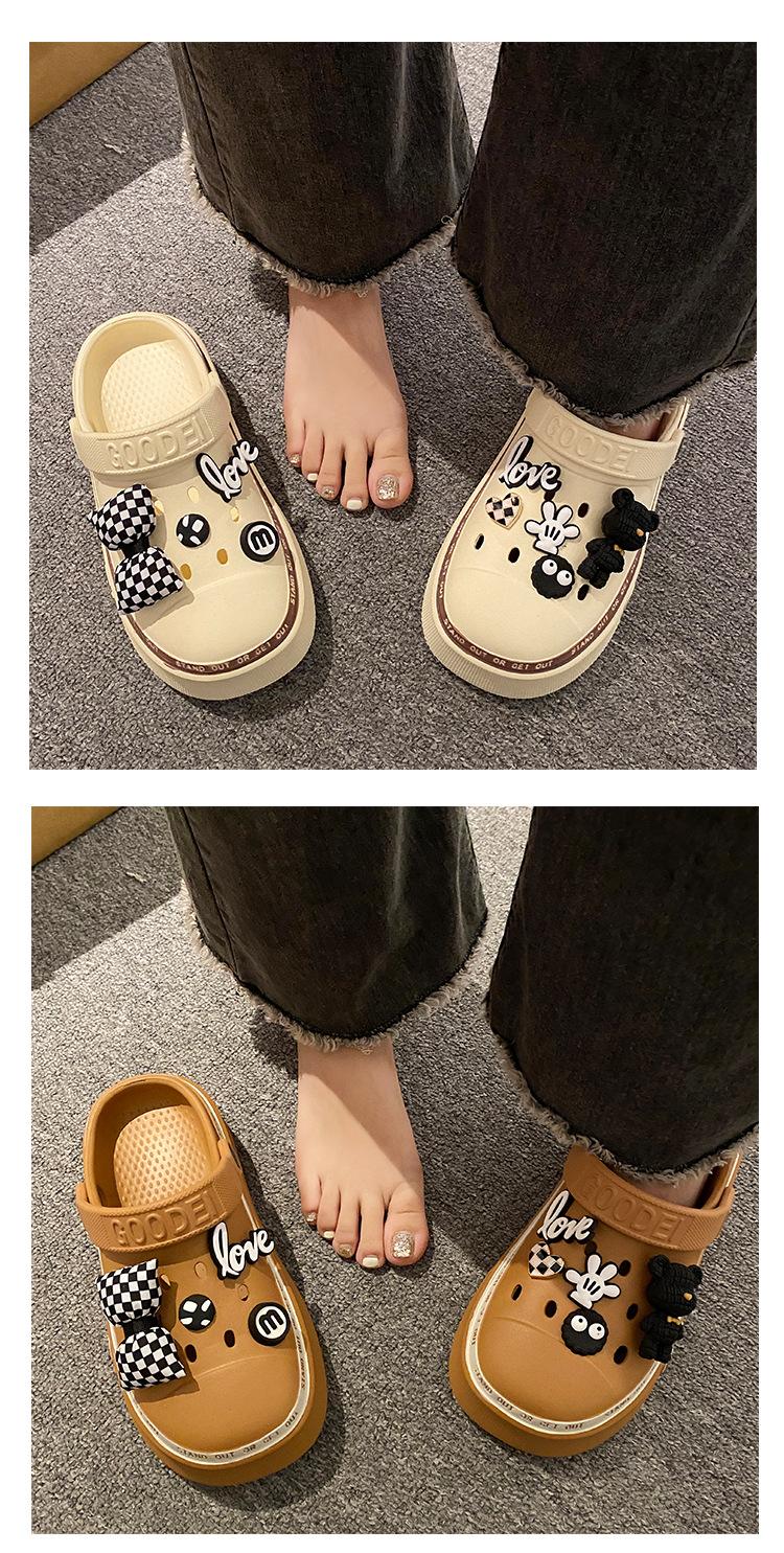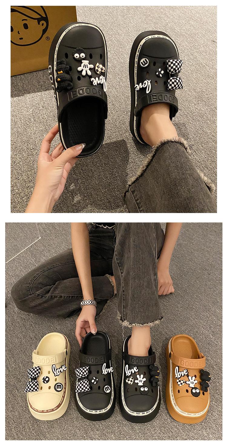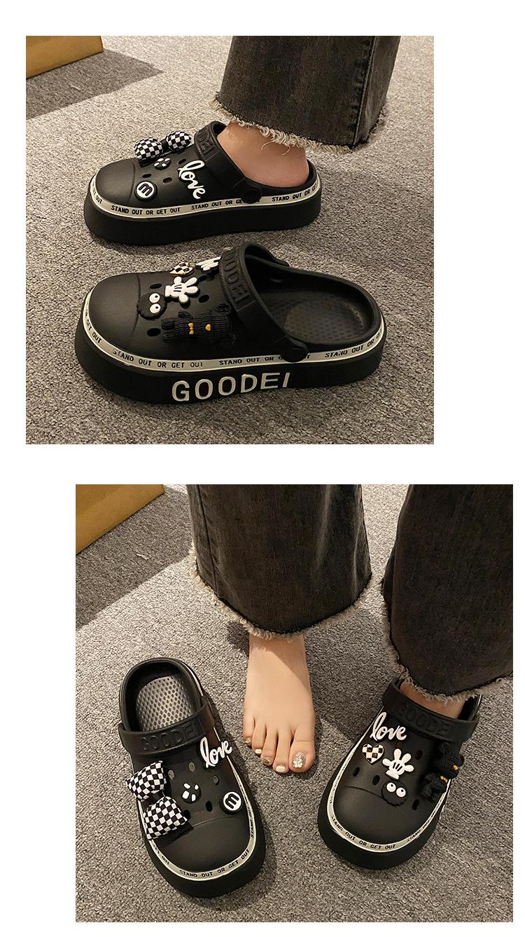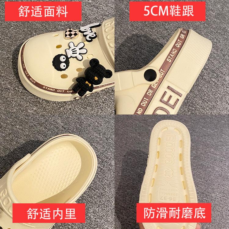 Zapatos de agujeros de suela gruesa para mujer verano para exteriores 2024 nuevos combinan con todo Moda Estudiante网红 Playa punta cerrada medias pantuflas