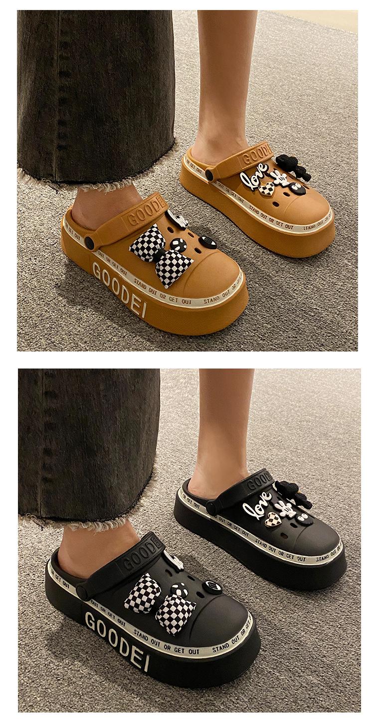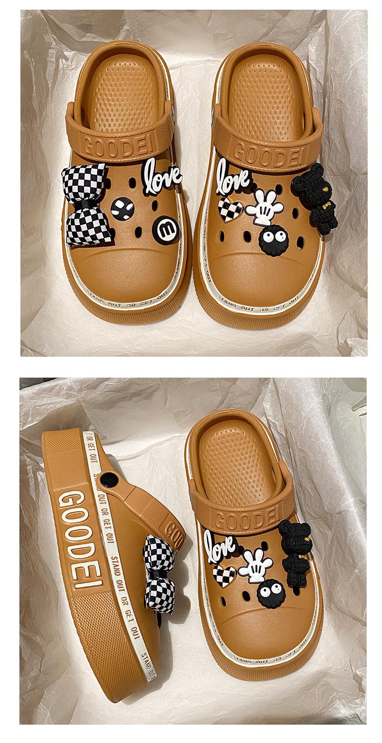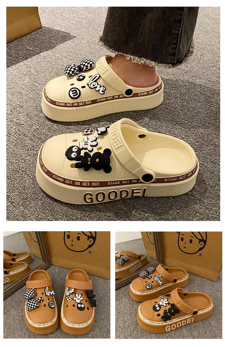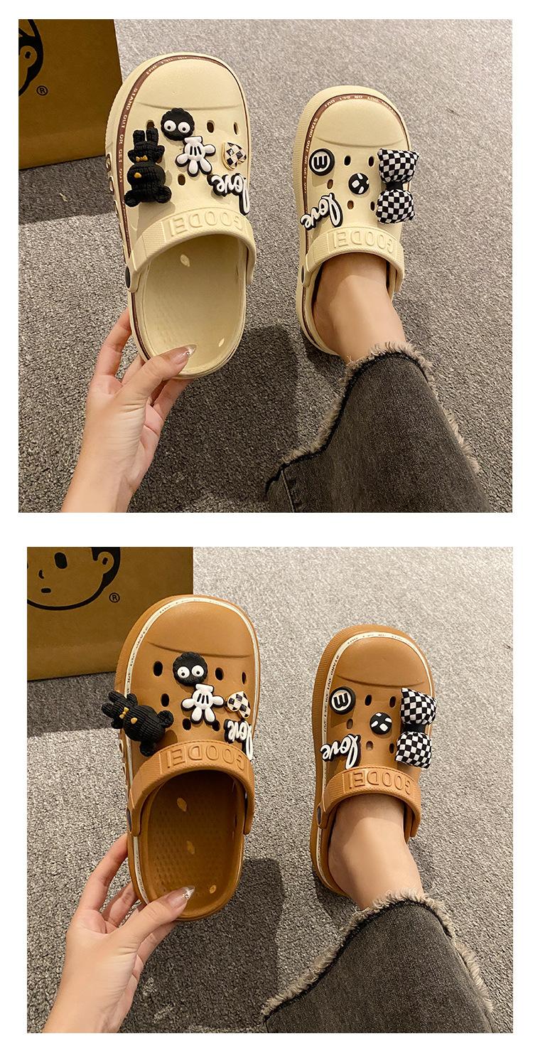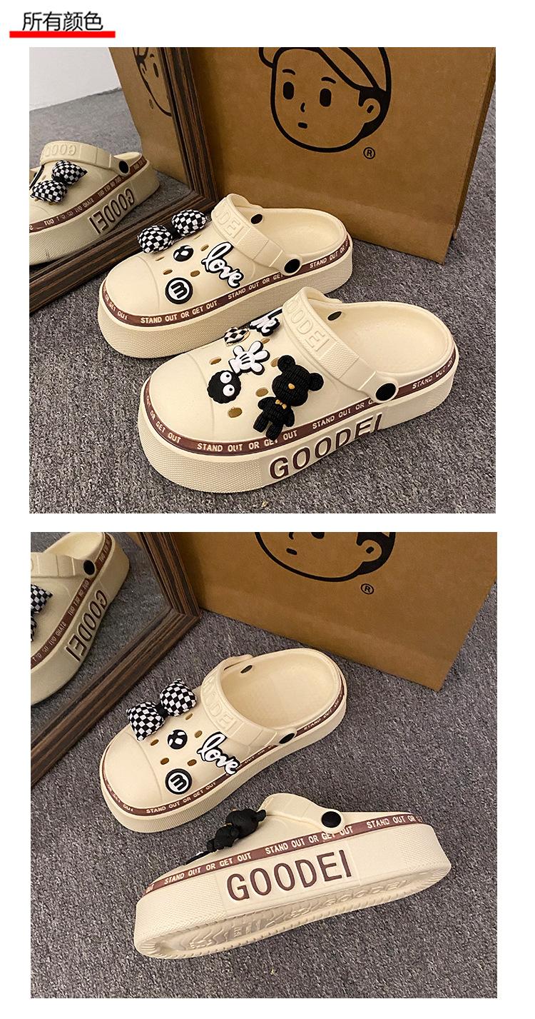 Zapatos de agujeros de suela gruesa para mujer verano para exteriores 2024 nuevos combinan con todo Moda Estudiante网红 Playa punta cerrada medias pantuflas