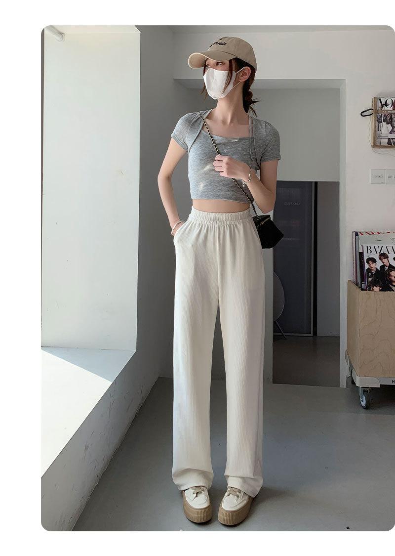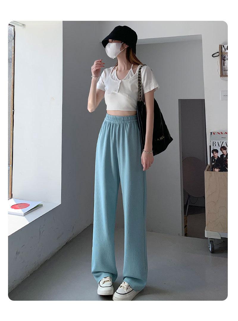 Pantalones de pierna ancha para mujer, sueltos, drapeados, finos, casuales, para mujer, primavera y verano, anchos, estrechos, con bolsillos, delgados, largos