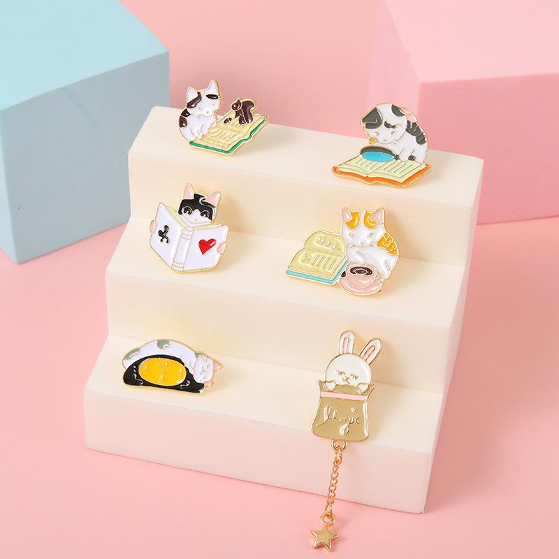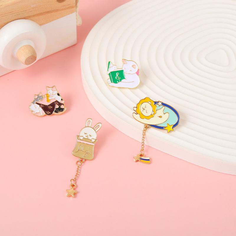 Bonita insignia de metal de dibujos animados de animales pequeños, accesorio de ropa, broche de ramillete, pequeño y fresco pin de bolso de moda