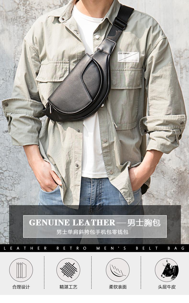 Bolso de pecho de moda para hombre, de piel auténtica, de gran capacidad, para deportes de ocio, bandolera de hombro, bolso de pecho de piel de primera capa para hombre, venta al por mayor