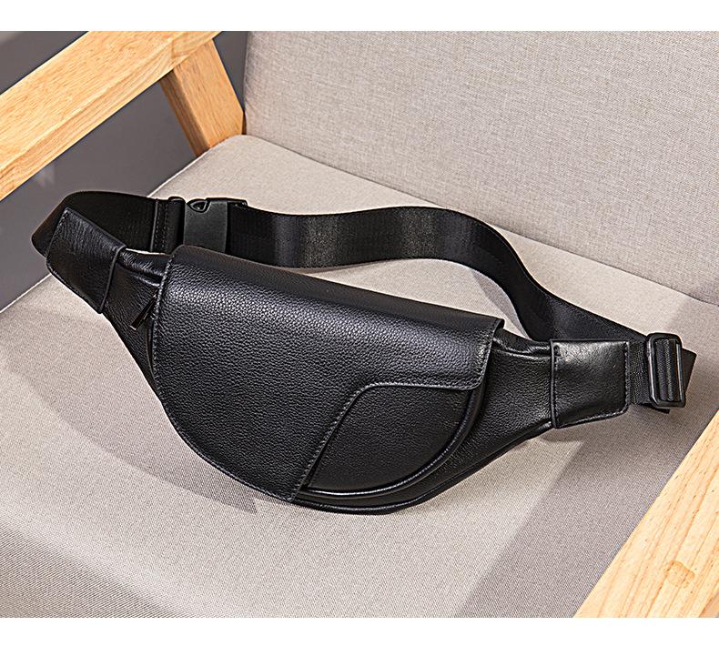 Riñonera de piel auténtica para hombre, moderna, versátil, de piel de oveja, impermeable, bandolera multifuncional.