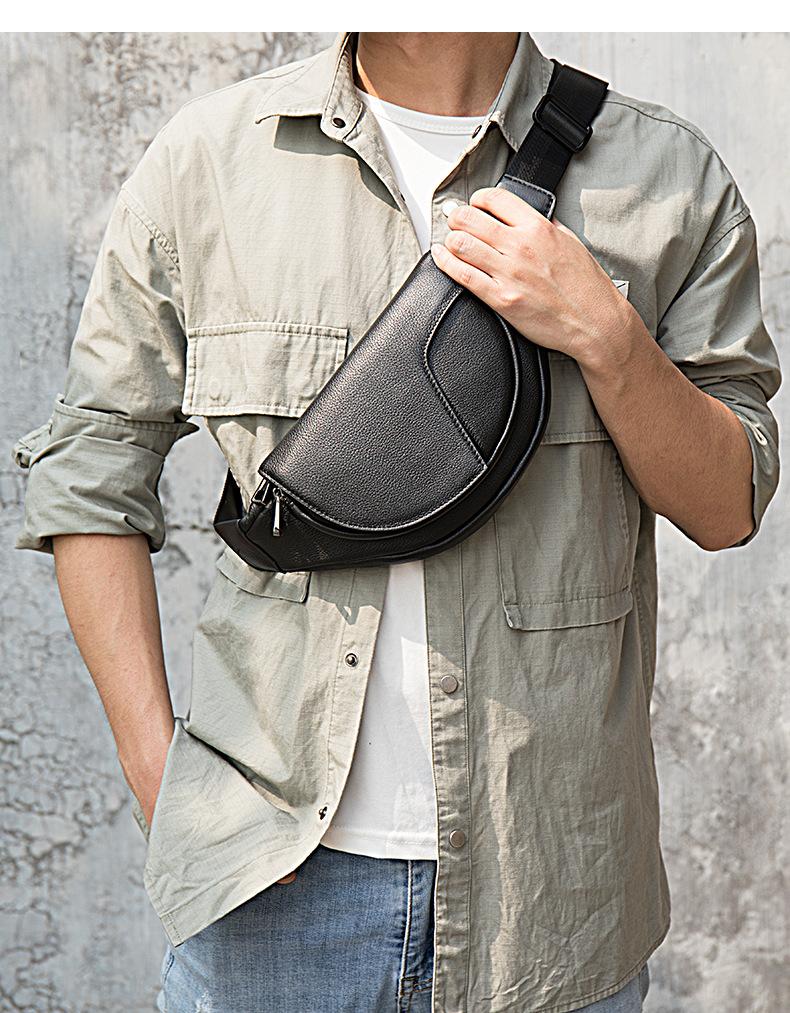 Bolso de pecho para hombre, de piel auténtica, estilo coreano, informal, de piel de vaca, tipo mensajero, mochila pequeña, a la moda, novedad de 2022