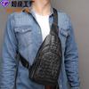 Venta directa de fábrica, bolso de cuero genuino para hombre, bolso de pecho de cuero genuino casual europeo y americano para hombre, bolso de mensajero con cremallera de piel de vaca con estampado de cocodrilo a la moda