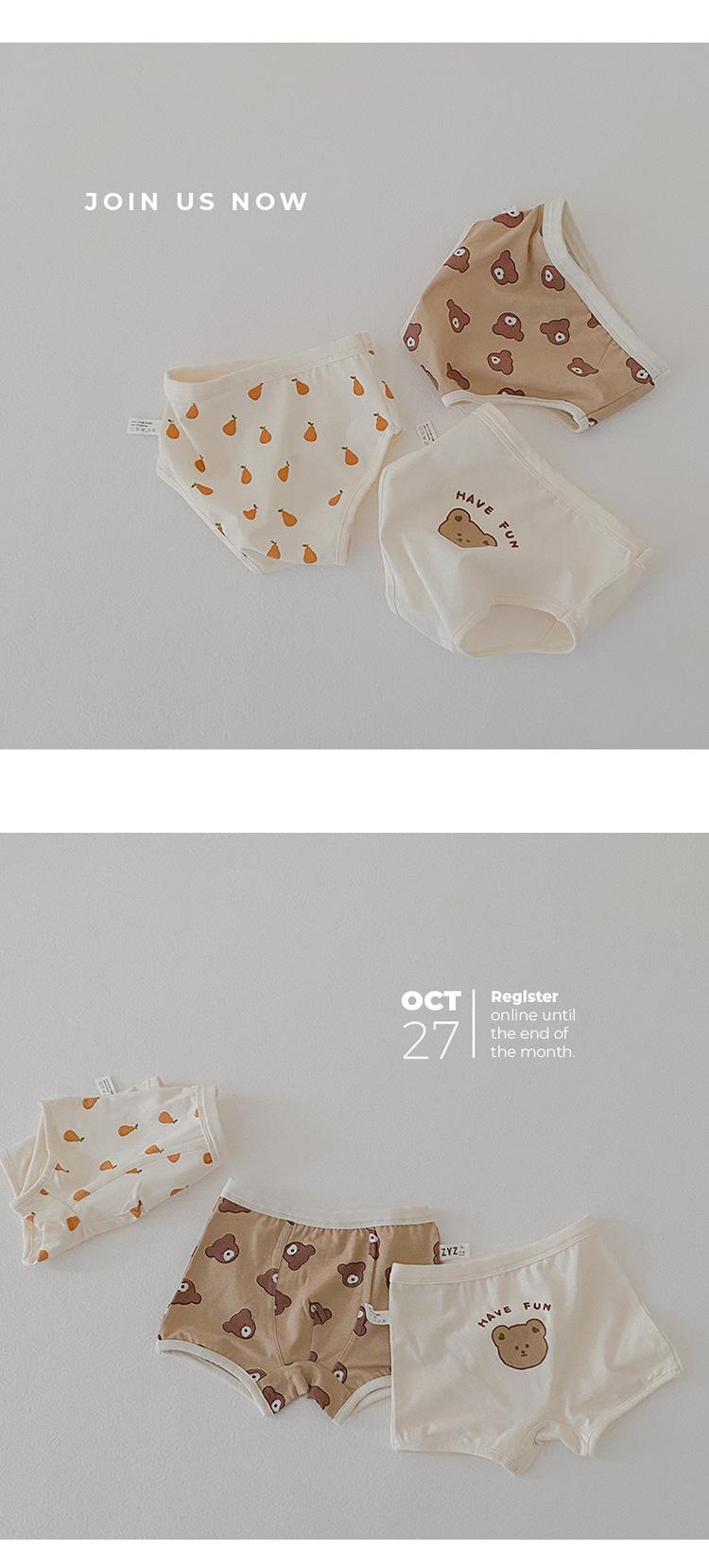 Ropa interior para niños N080 2022 nueva al por mayor ropa interior para bebé con dibujos animados de oso ropa interior para niño de algodón puro animal lindo