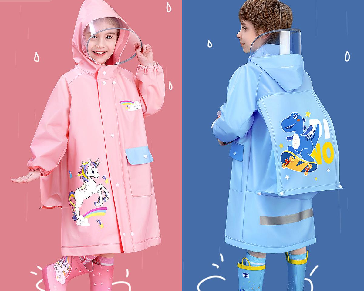 Impermeable infantil al por mayor desechable EVA bebé estudiante impermeable con posición para mochila poncho infantil de cuerpo entero de una pieza
