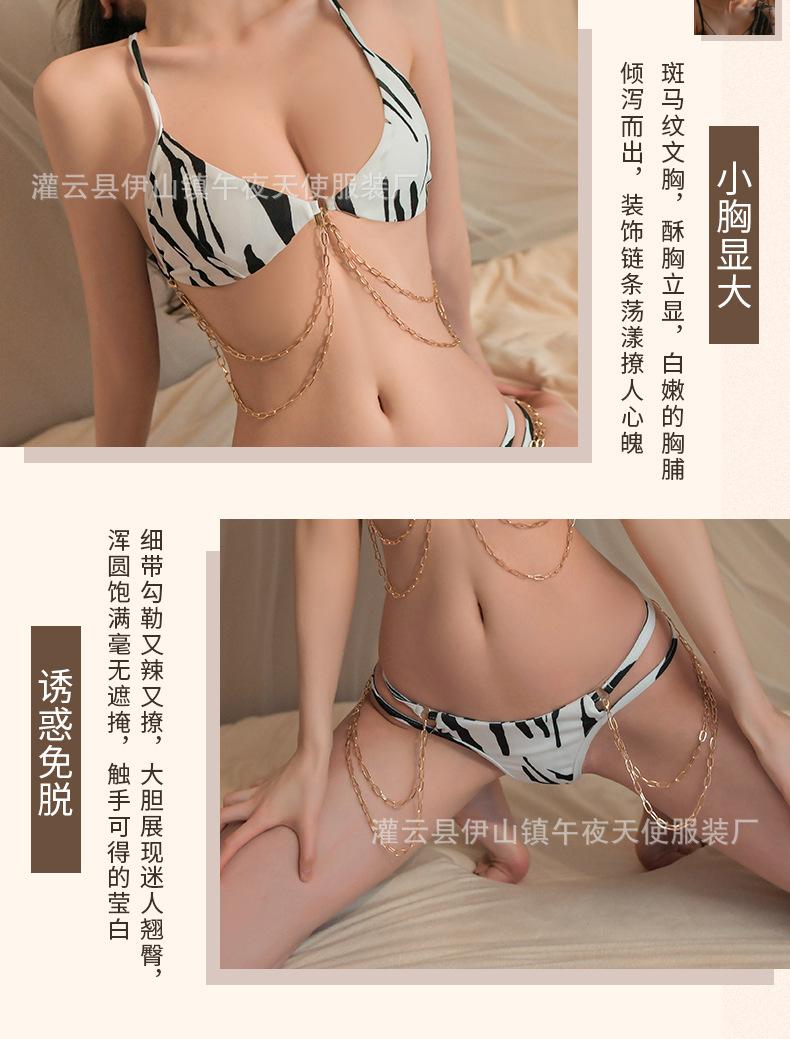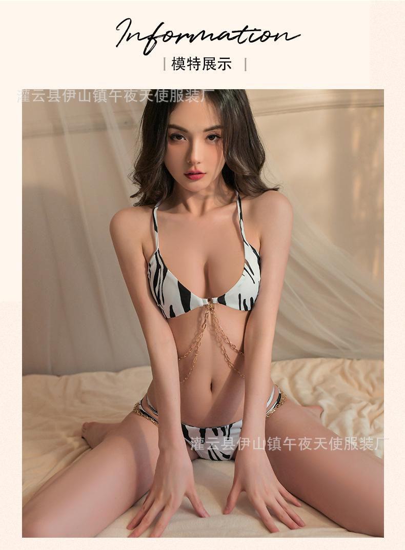 Ropa interior sexy de verano, nuevo estampado, sexy, cadena de sujeción, bikini de moda de dos piezas, conjunto de tres puntos 1921