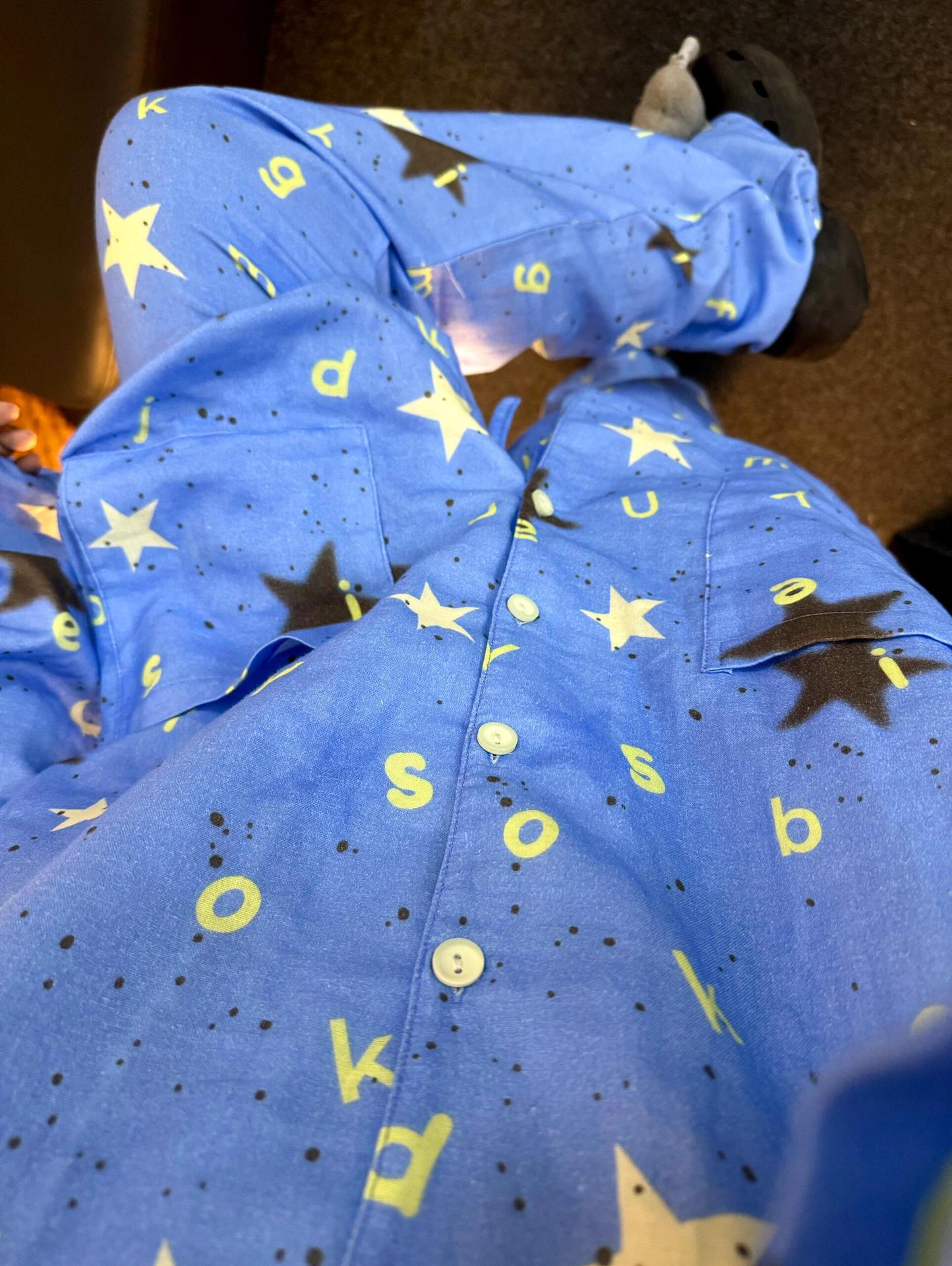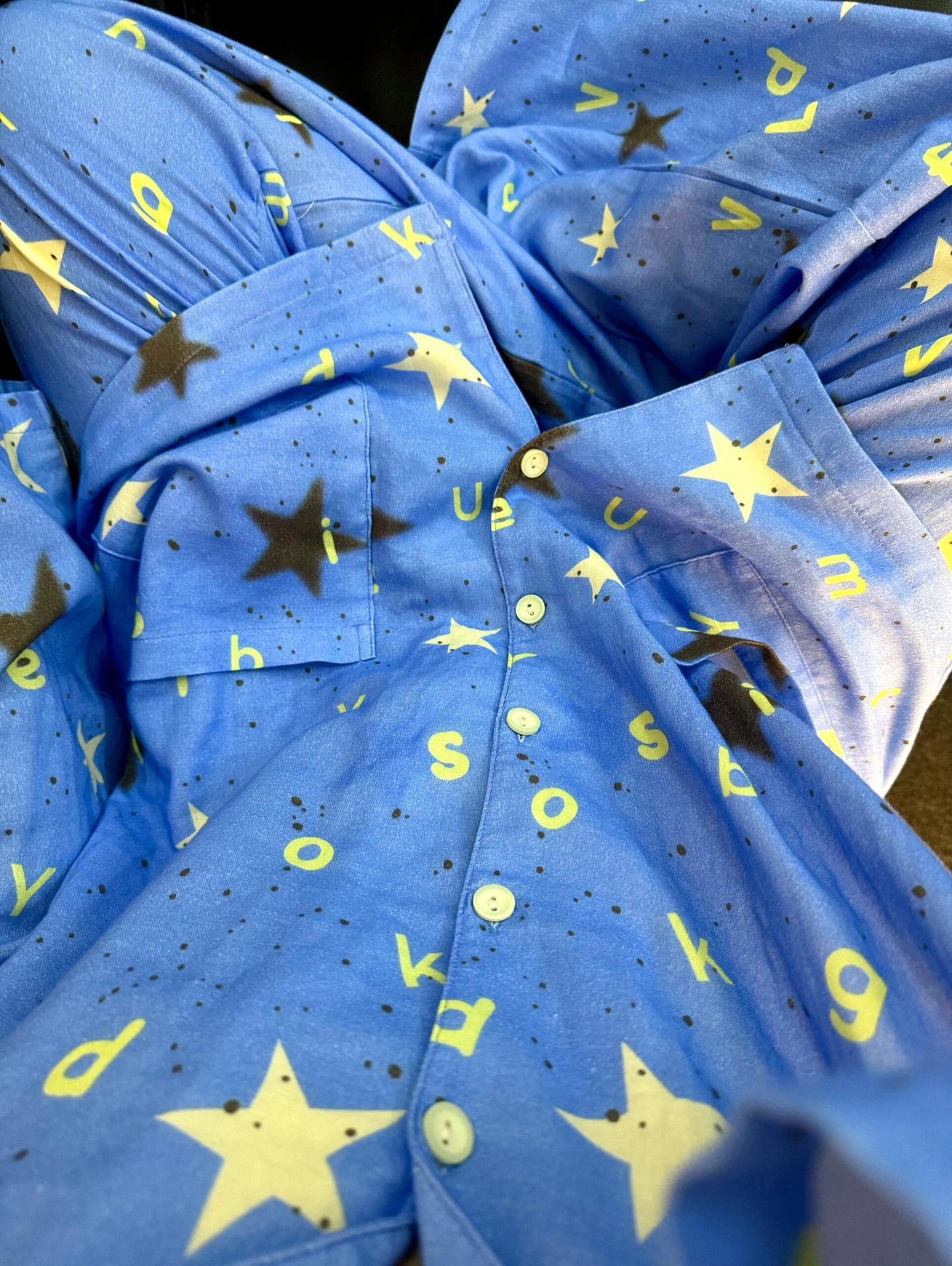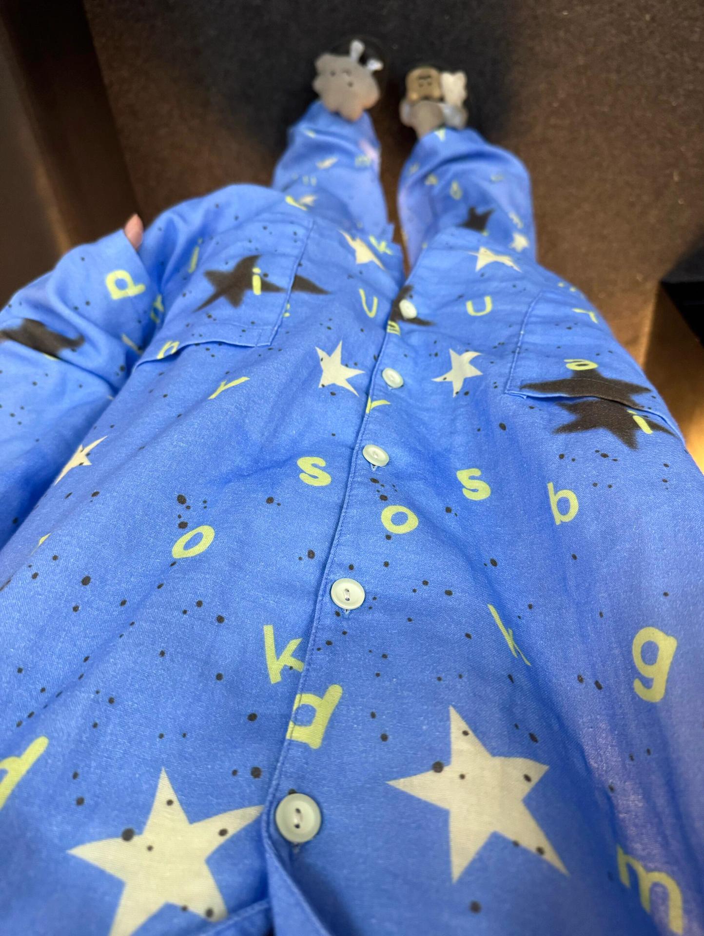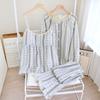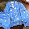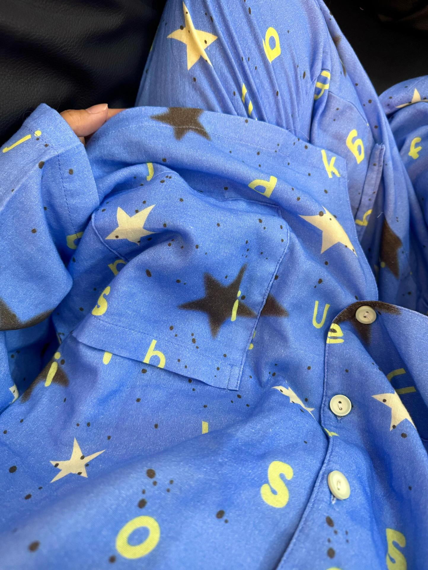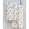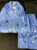 Otoño Nuevo Solapa Hilo de Algodón Manga Larga Pijama para Mujer Lindo Dibujo Animado Inyección de Tinta Estrellas Ropa de Exterior Ropa para el Hogar