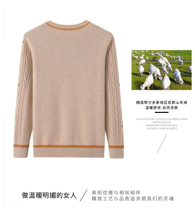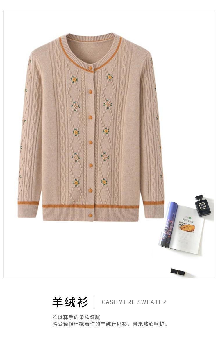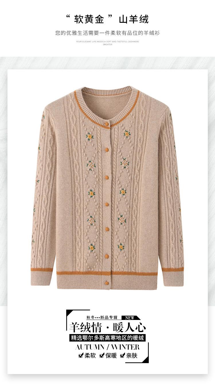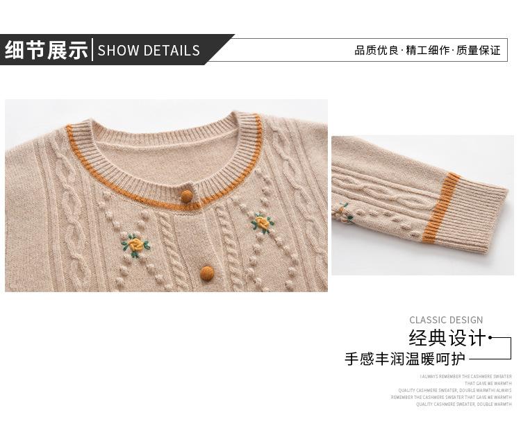 Otoño e Invierno Nuevo Cárdigan Casual de Cuello Redondo para Mujer de Cachemira 100 Pura Suéter de Moda Bordado Espesado Chaqueta Suéter de Lana Pura
