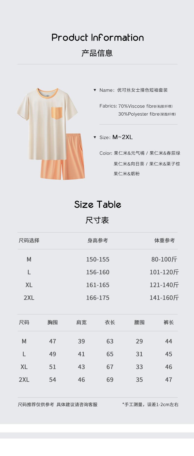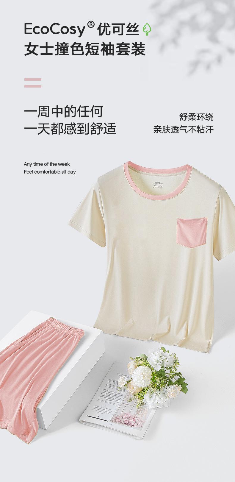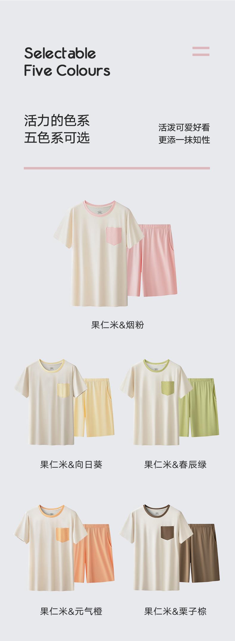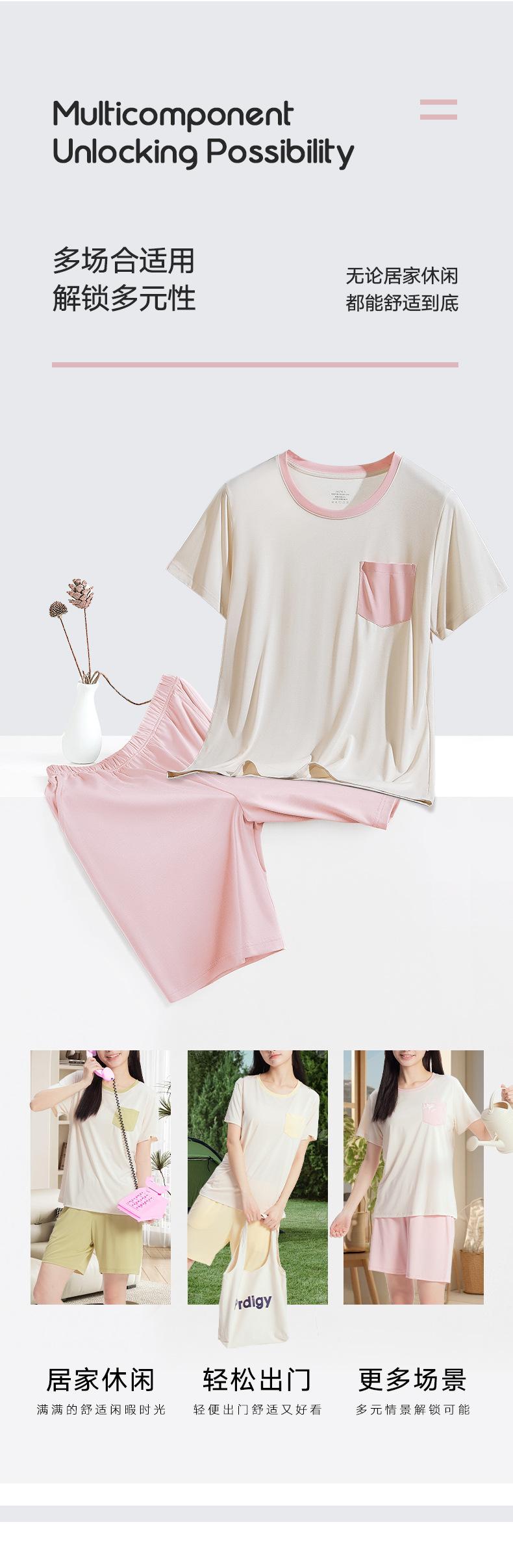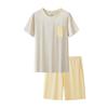 Pijamas de mujer Youkesi de primavera y verano que se pueden usar al aire libre, pantalones cortos de color sólido de manga corta y finos, traje informal para el hogar.