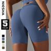 Pantalones cortos ajustados de cintura alta para yoga, calzoncillos de verano para mujer, estilo europeo y americano, con realce de cadera y cintura alta, sin costuras.