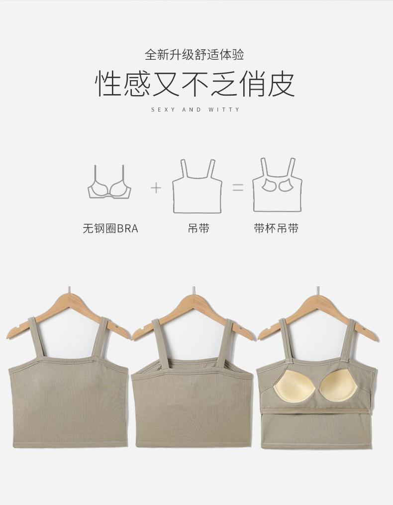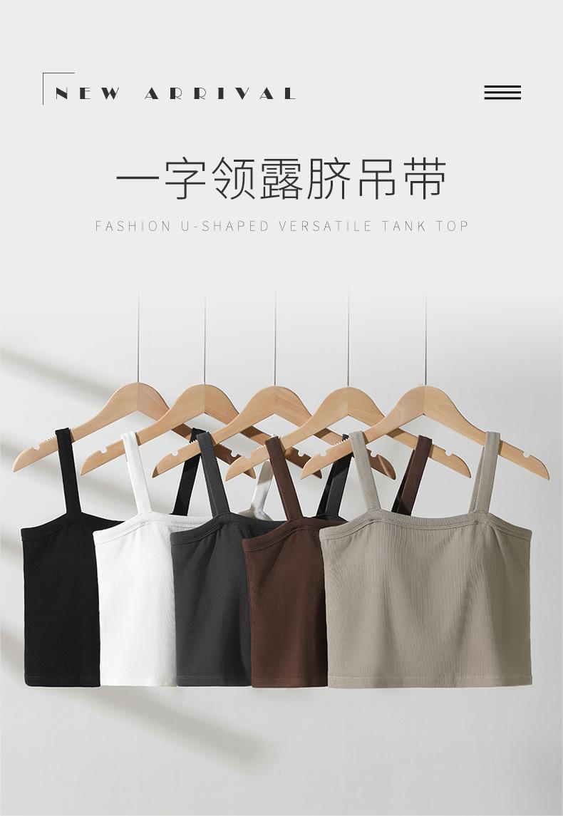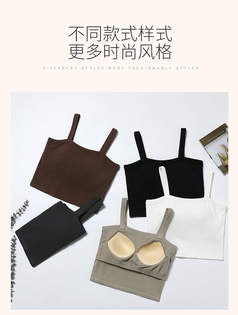 Nuevo Estilo Camisola de Cuello de un Carácter Primavera Combinación Total Ropa Interior con Almohadilla en el Pecho Color Sólido Casual Top Base sin Tirantes Top sin Tirantes