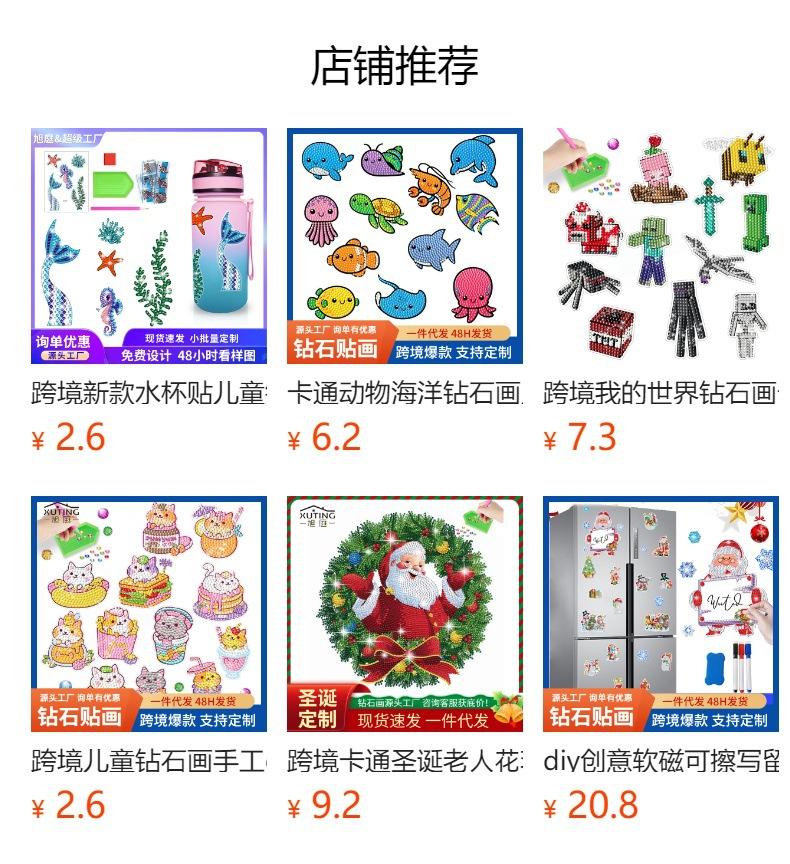 Pintura de Diamantes Vida Marina Hecho a Mano DIY Calcomanías Aleatorias Niños Dibujos Animados Calcomanías de Diamantes Calcomanías de Diamantes Cristal Brillante Venta al Mayoreo