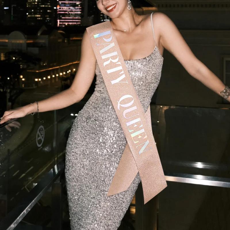 Europeo y Americano Transfronterizo Nuevo Cinturón de Etiqueta con Correa de Hombro de Tela con Brillo Cinturón de Baile de Graduación Reina de la Fiesta Despedida de Soltero Que