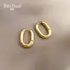 Pendientes de oro real de 14 quilates chapados en metal, estilo japonés y coreano, sencillos, medianos y fríos, con hebilla de oreja ovalada para mujer, de marca de moda.
