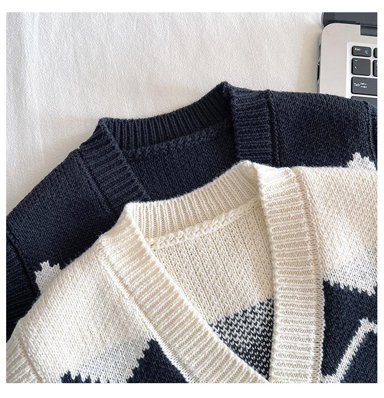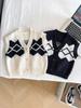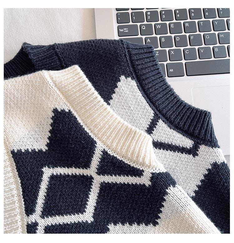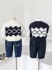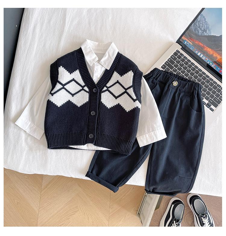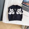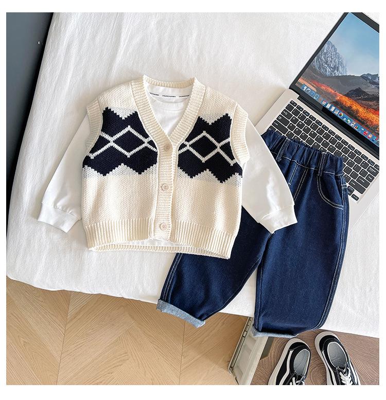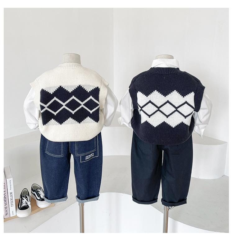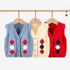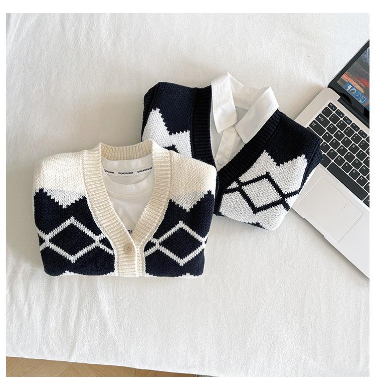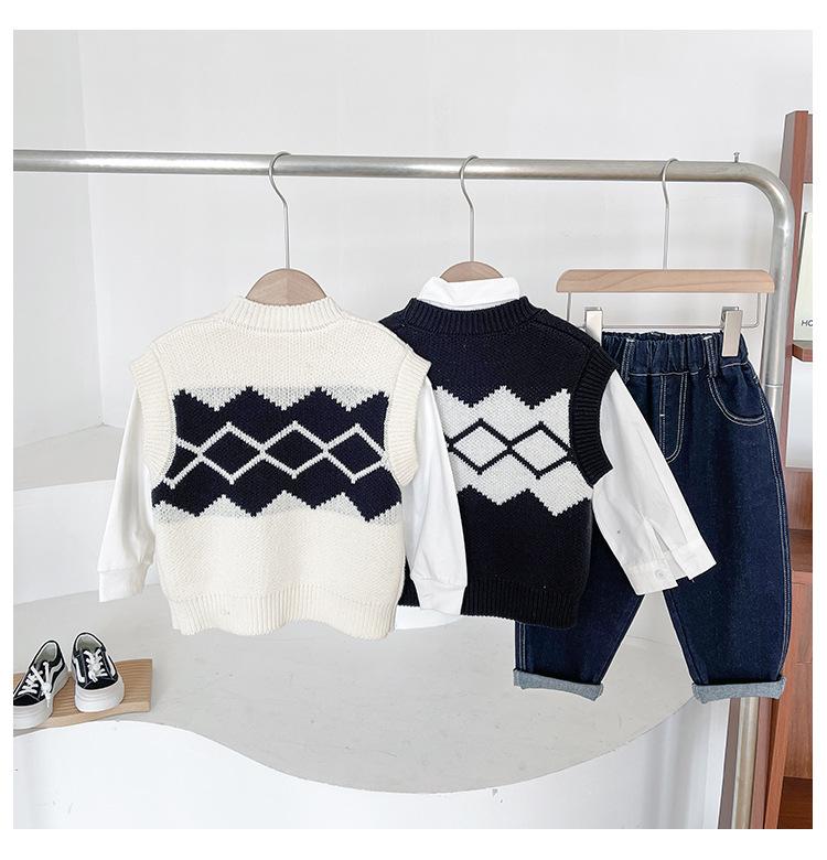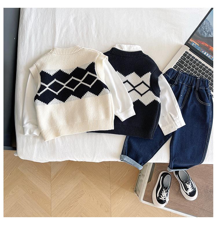 Fengzhigu 2024 principios de primavera nueva ropa para niños estilo universitario coreano chaleco de punto Jacquard cárdigan de todo fósforo para niños