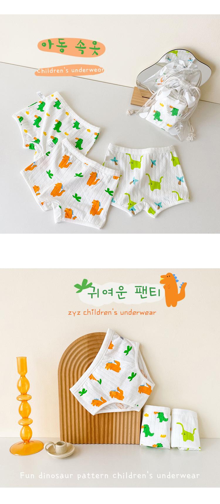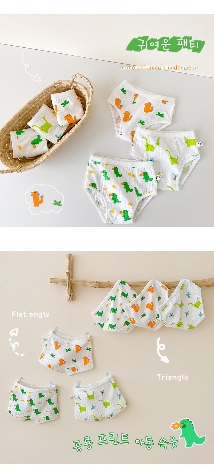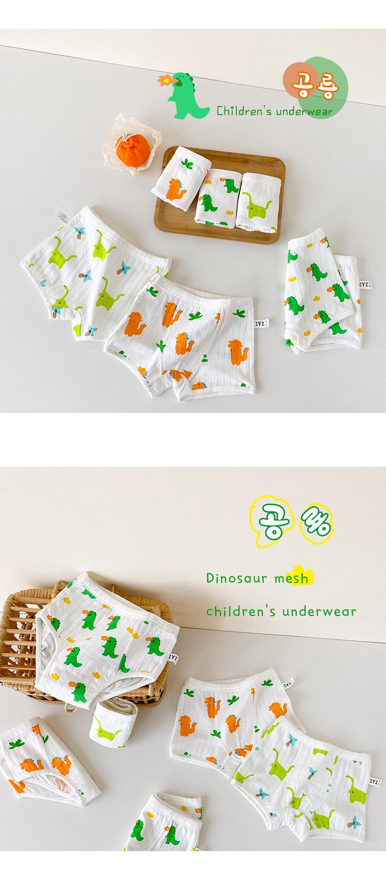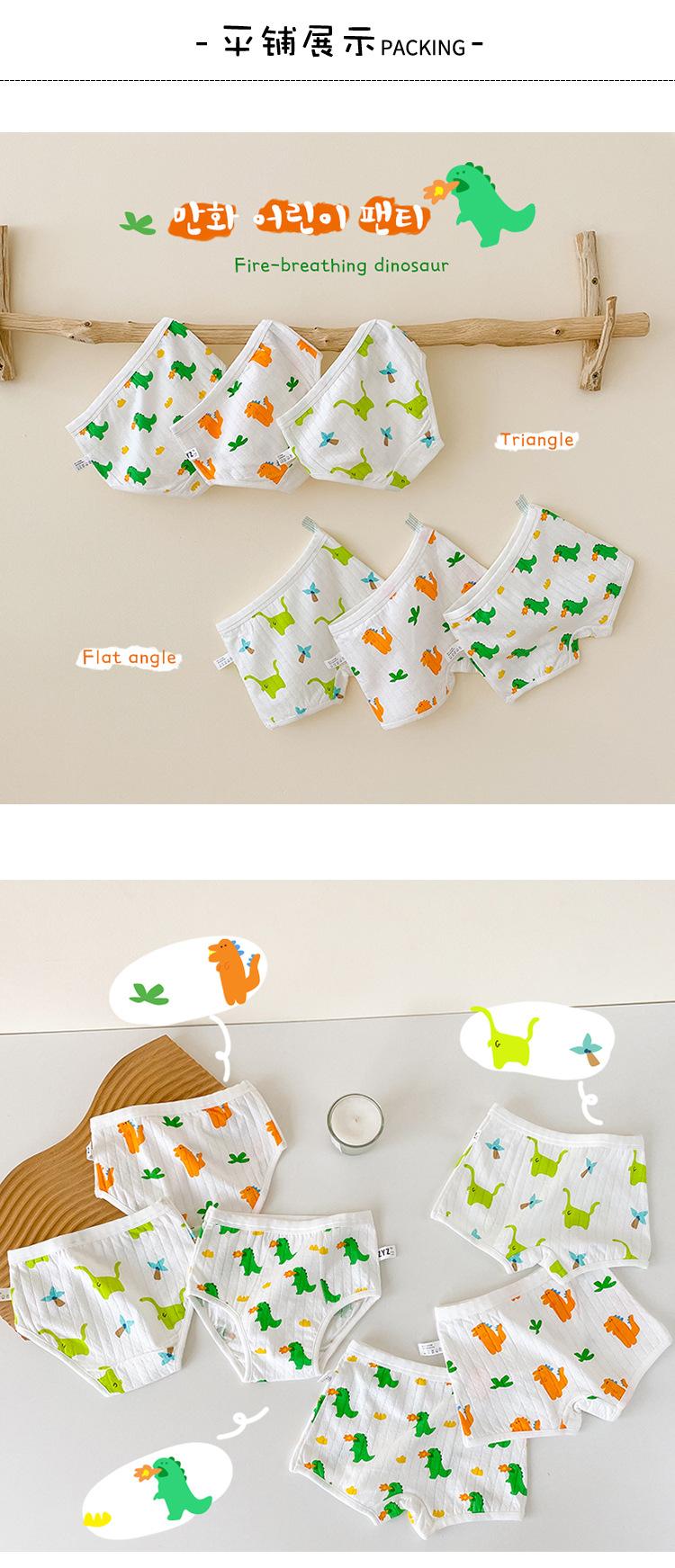 N059 Ropa Interior Infantil al Por Mayor Algodón Transpirable Triángulo Ropa Interior de Malla para Bebé Dibujos Animados Dinosaurio Ropa Interior para Niños