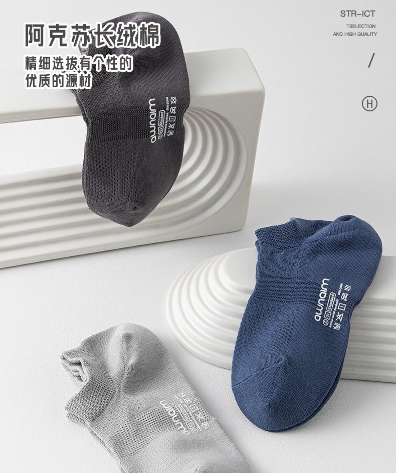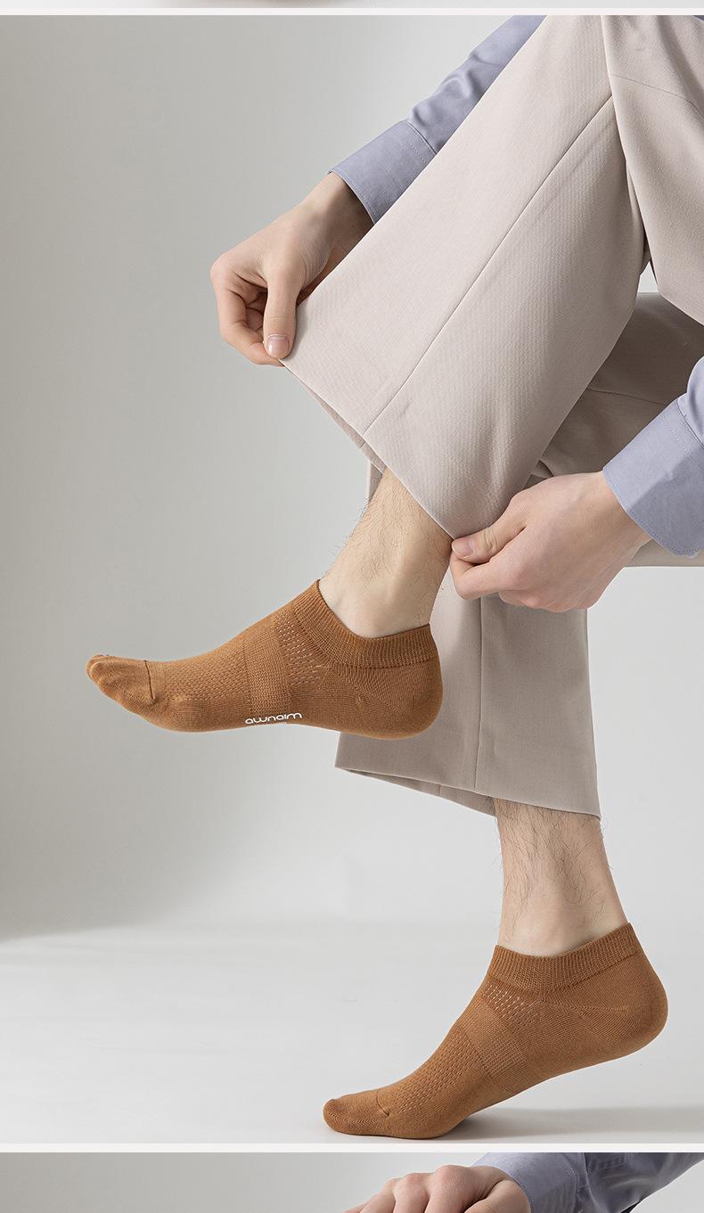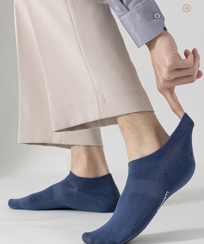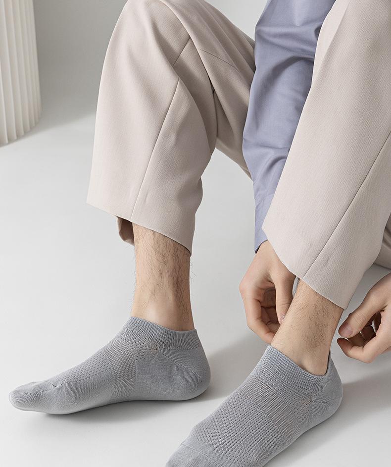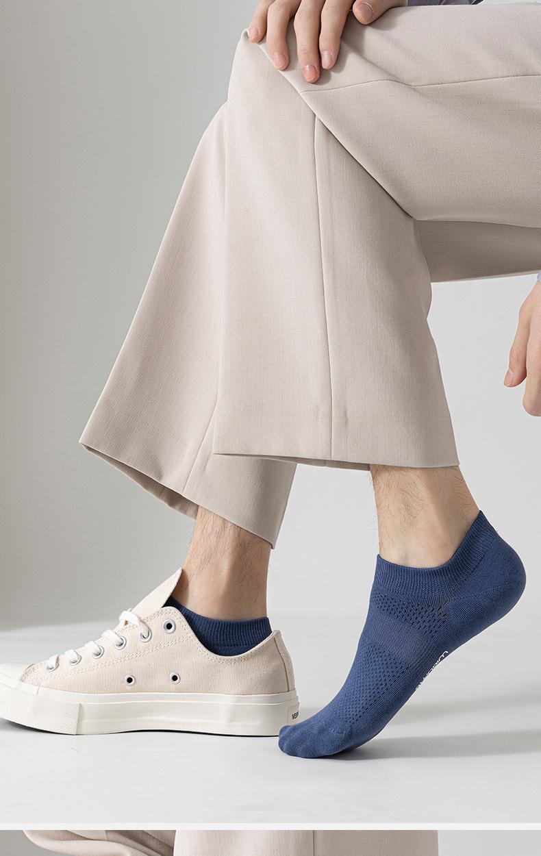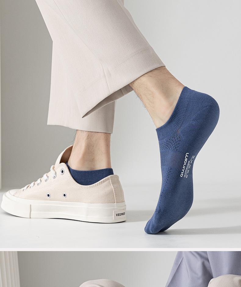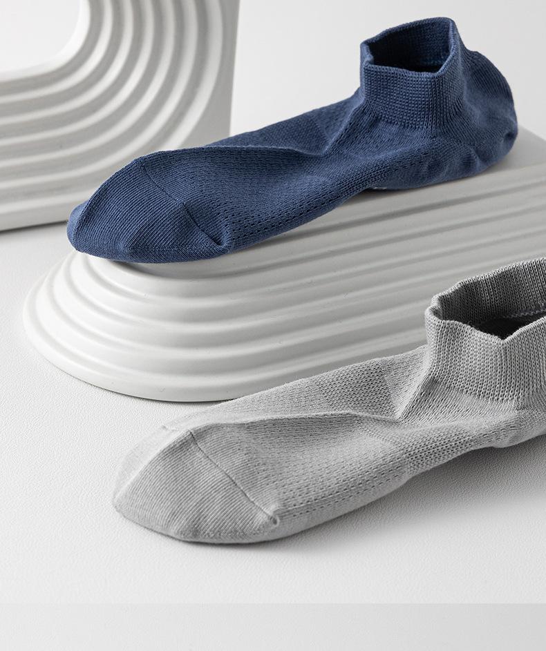 Calcetines de verano para hombre, finos, de algodón, de tubo corto, náuticos, de color liso, de malla transpirable y absorbente del sudor.
